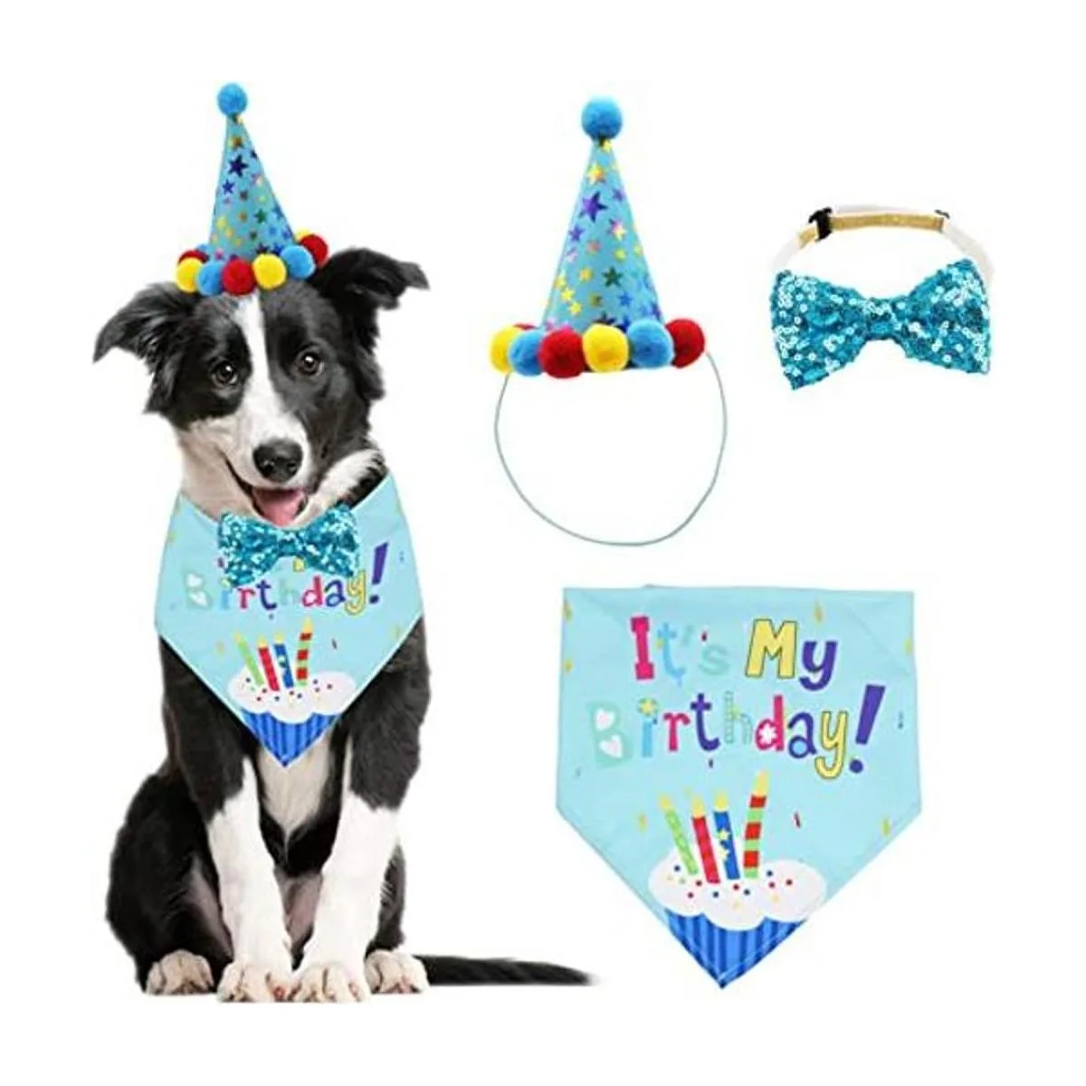 Paquete: 1 bufanda para perro, 1 sombrero para perro, 1 corbatín. Viste a tu mascota con este adorable traje de fiesta de cumpleaños para perros ahora Tomemos fotos y grabemos el hermoso momento.