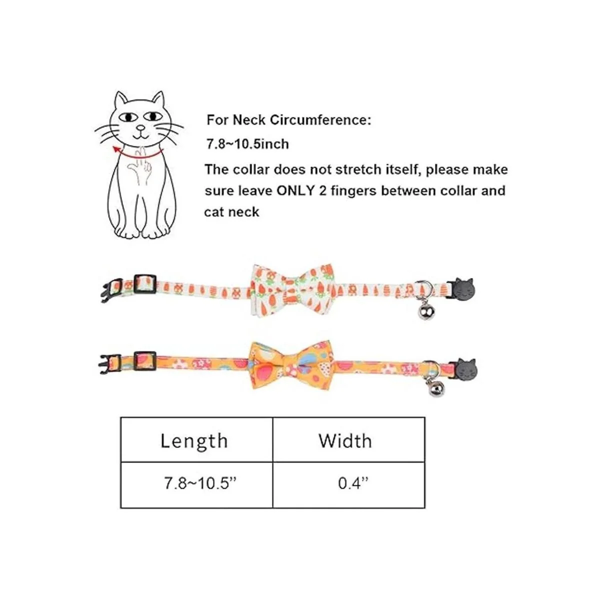Material y tamaño: hecho de tela de algodón de alta calidad, duradero y suave. Ajustable de 7.8 a 10.5 pulgadas, 0.4 pulgadas de ancho, adecuado para la mayoría de gatos