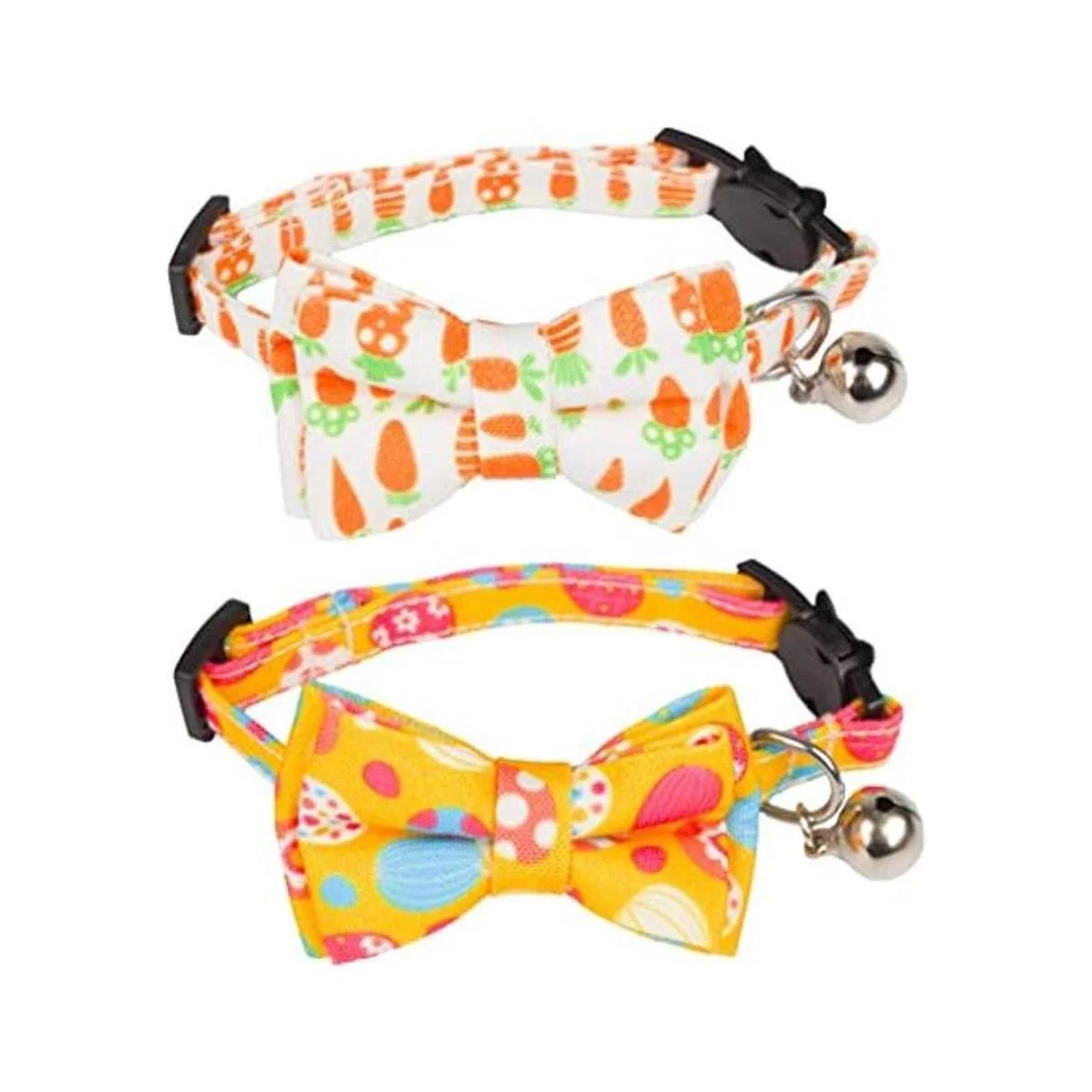 ADOGGYGO Paquete de 2 collares de gato de Pascua con campanilla de corbatín, collar de gatito desmontable con pajarita extraíble, collar de patrón de huevo de Pascua para gato