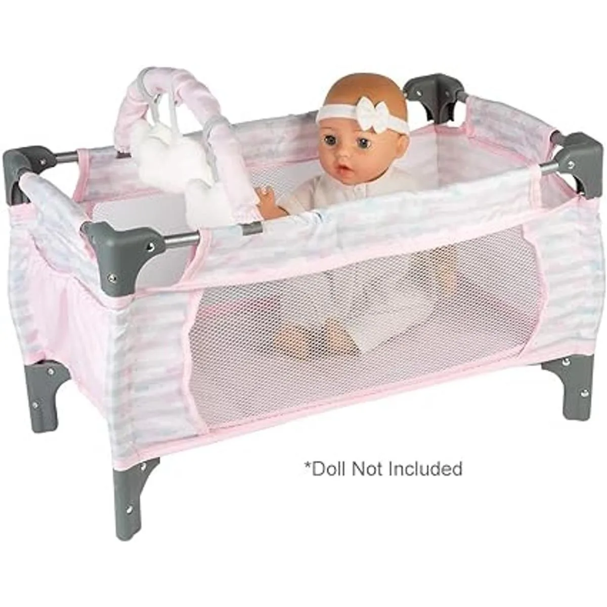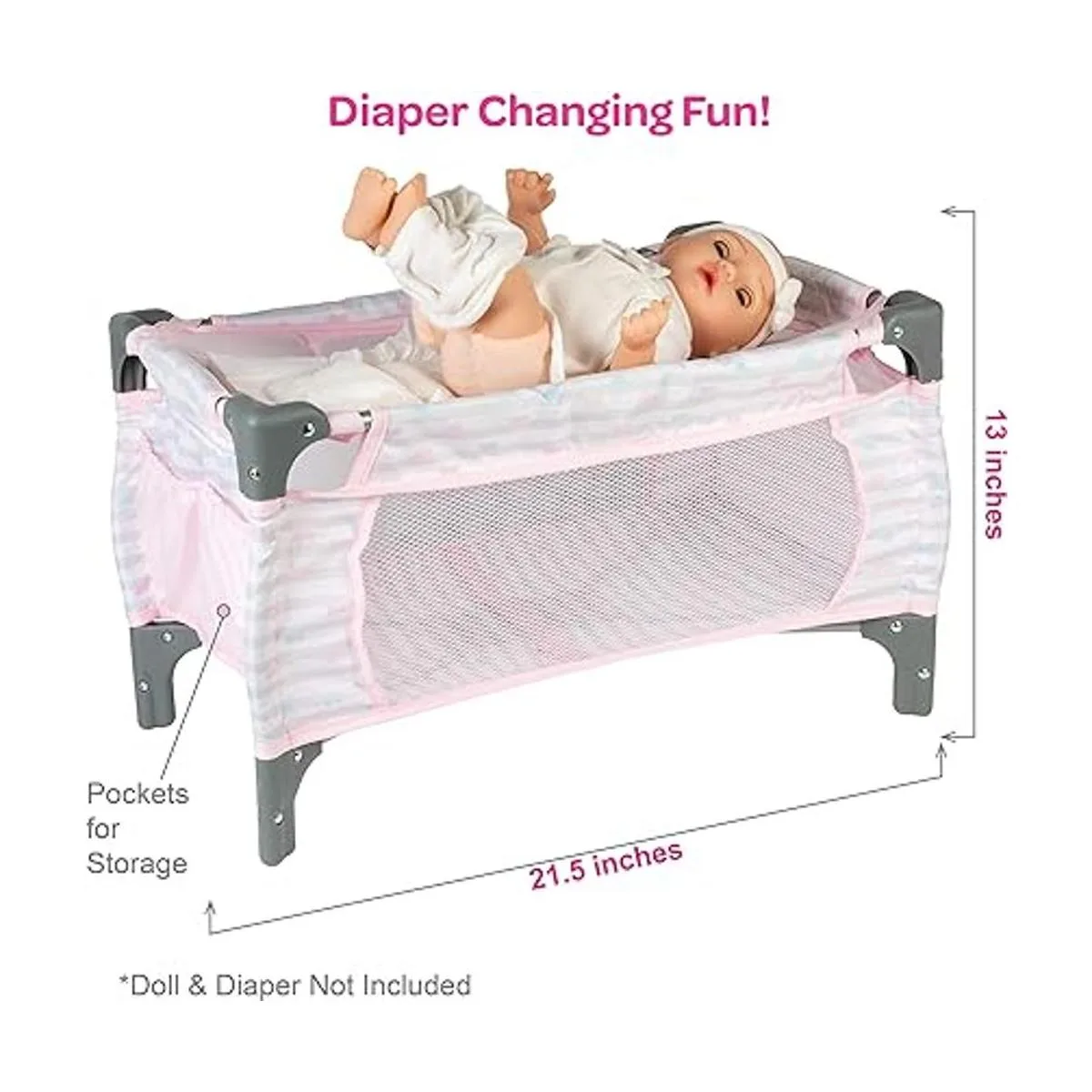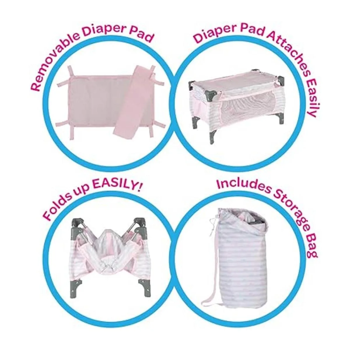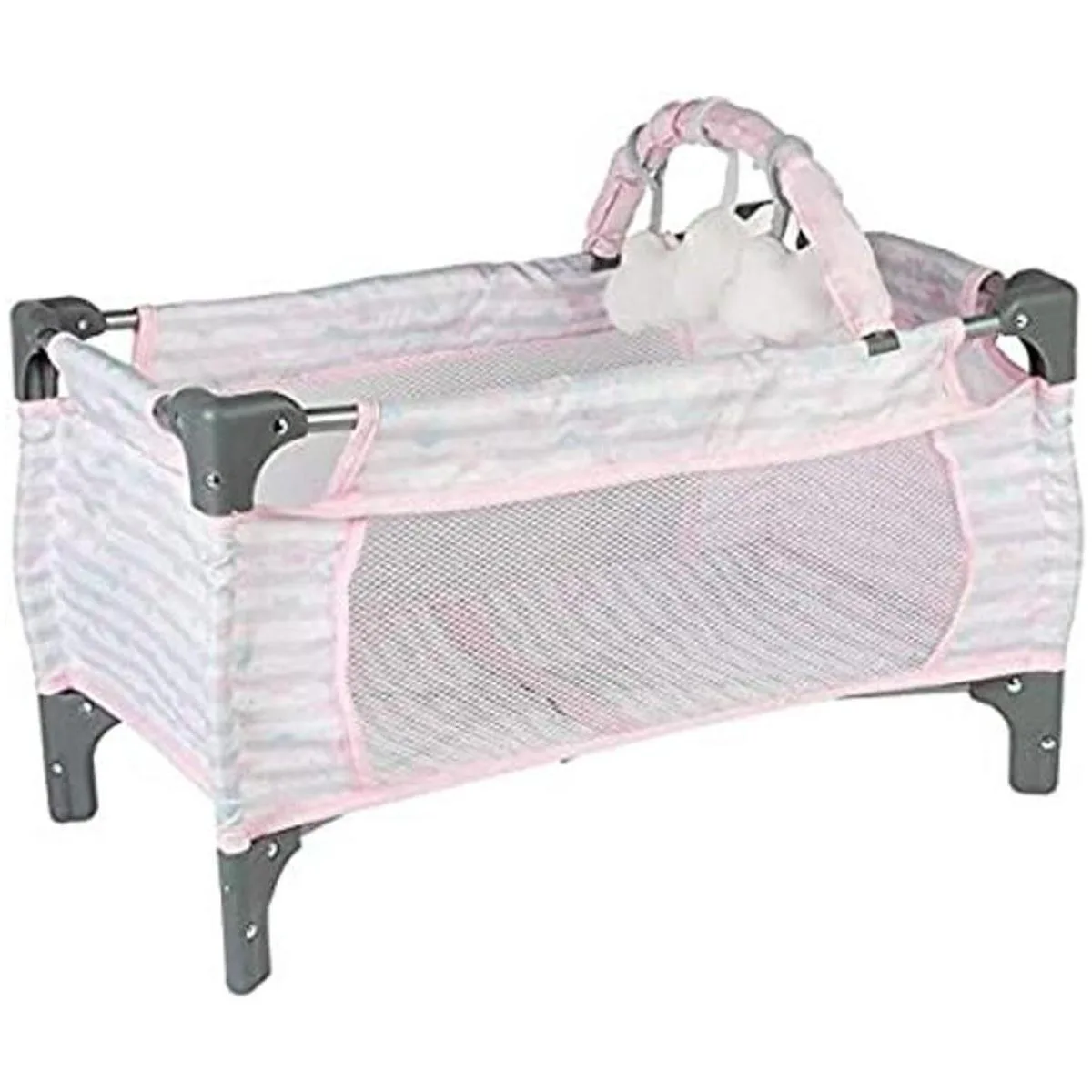 Adora Juego de 7 piezas para muñecas de hasta 20 pulgadas, cuna, color rosa, cuna, cambiador, 3 nubes y bolsa de almacenamiento