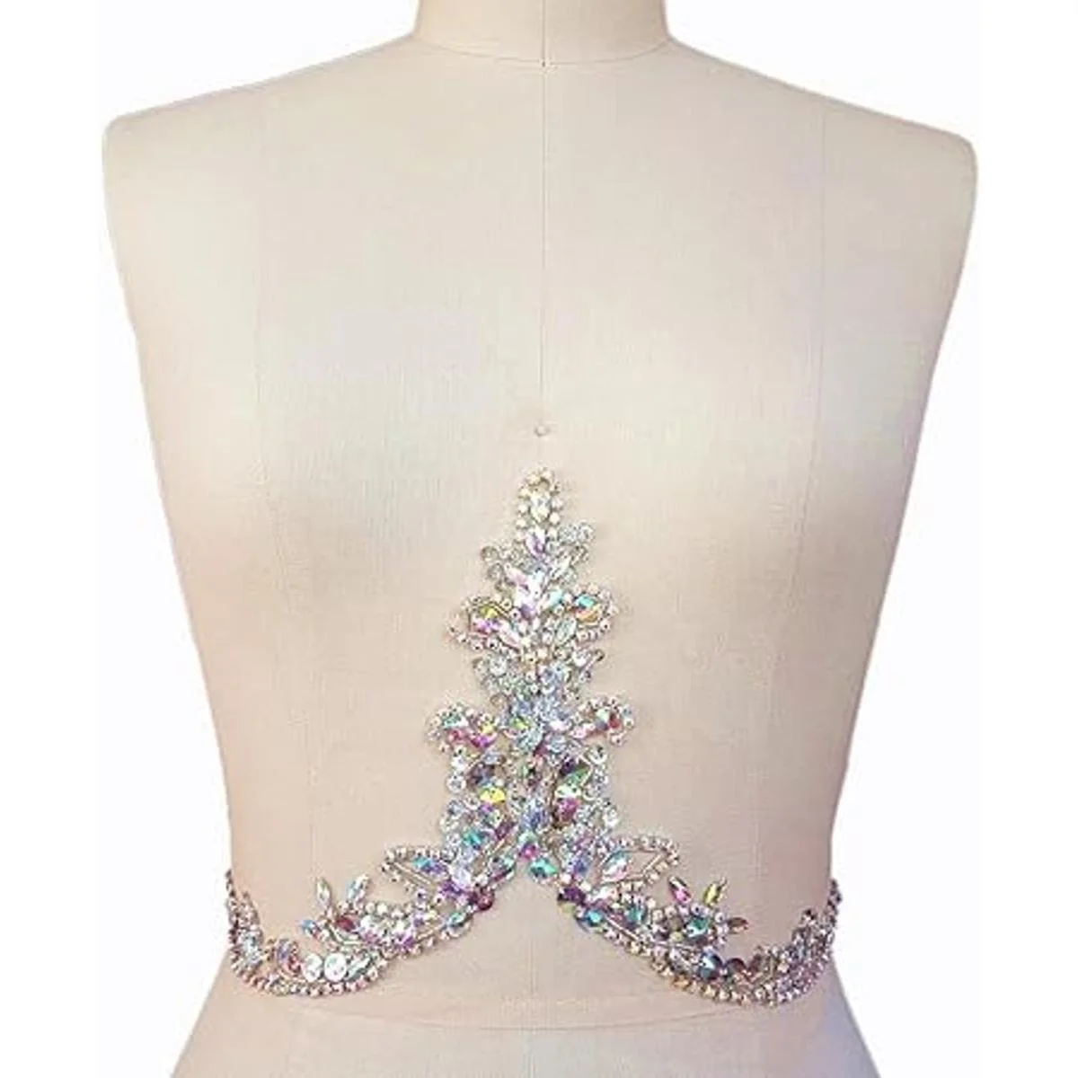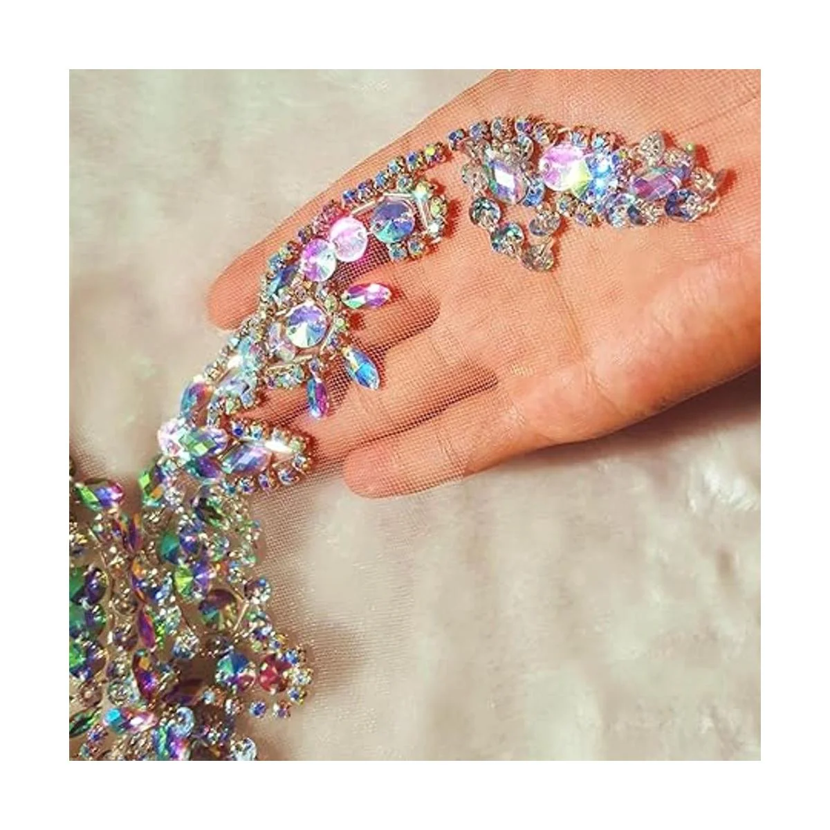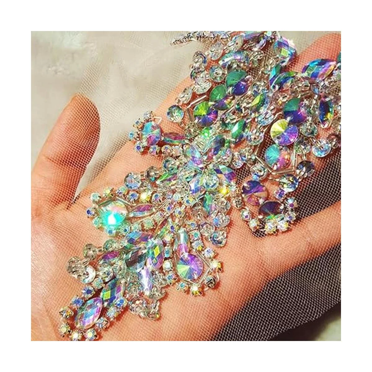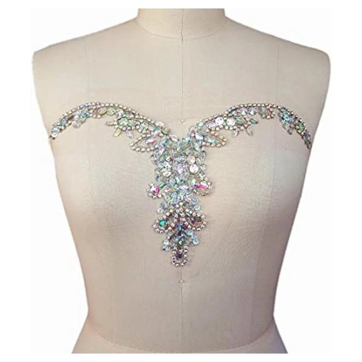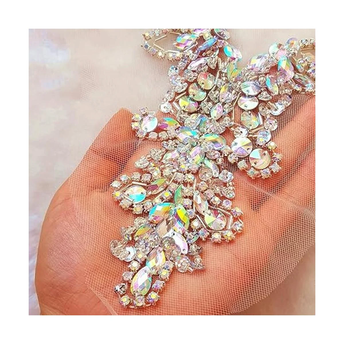Adorno de lentejuelas de 20x34cm, hecho a mano, para coser en escote, con bordes de estrás; apliques cosidos para vestidos de boda, decoración DIY.