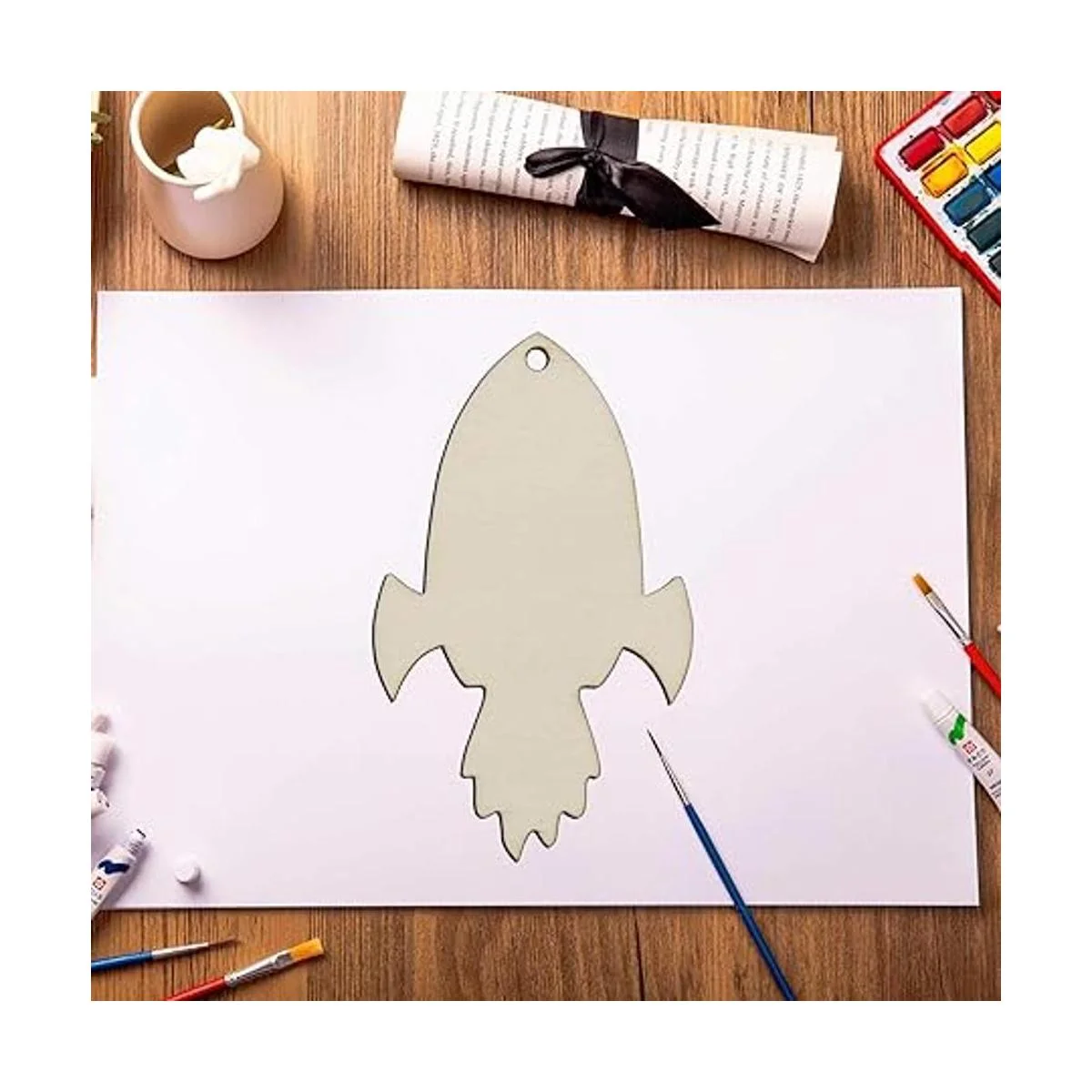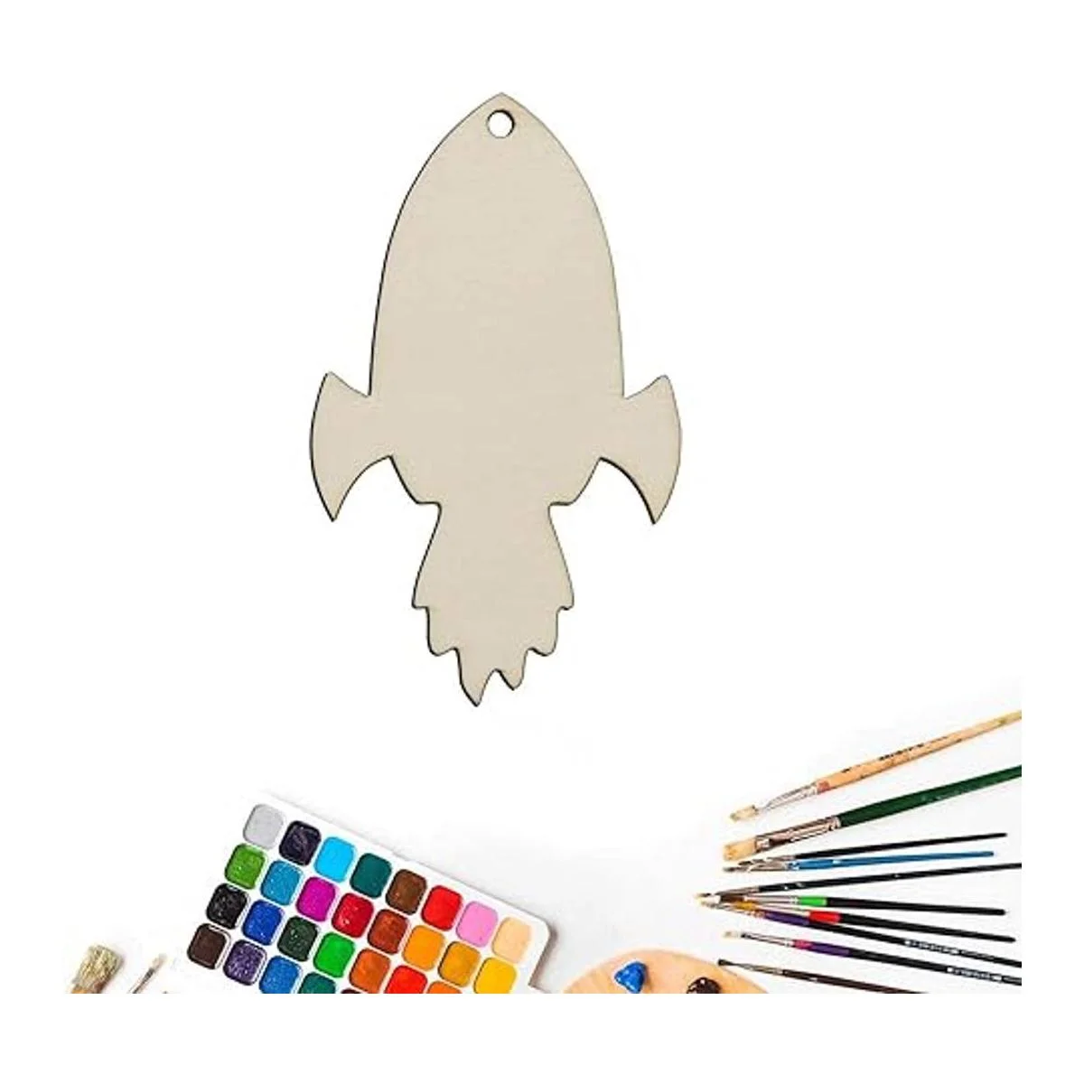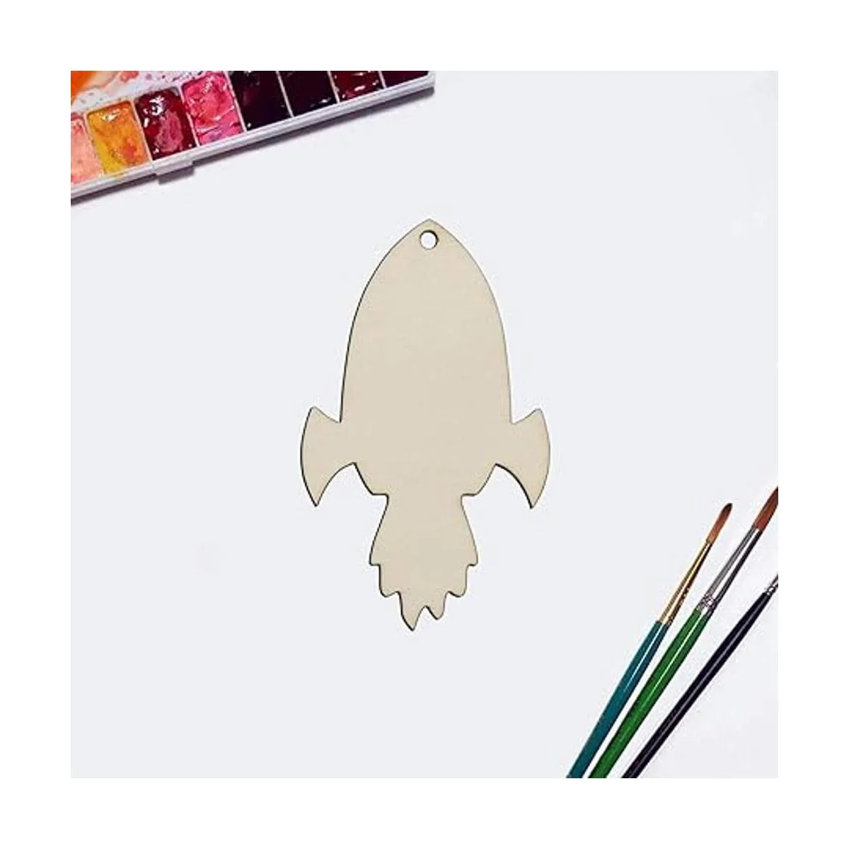 Características: diseño en forma de cohete de madera en blanco para colgar, con un agujero y cuerda, se puede utilizar para colgar decoración. Perfecto para usar como etiquetas, tablero de fiesta, tablero de aula.