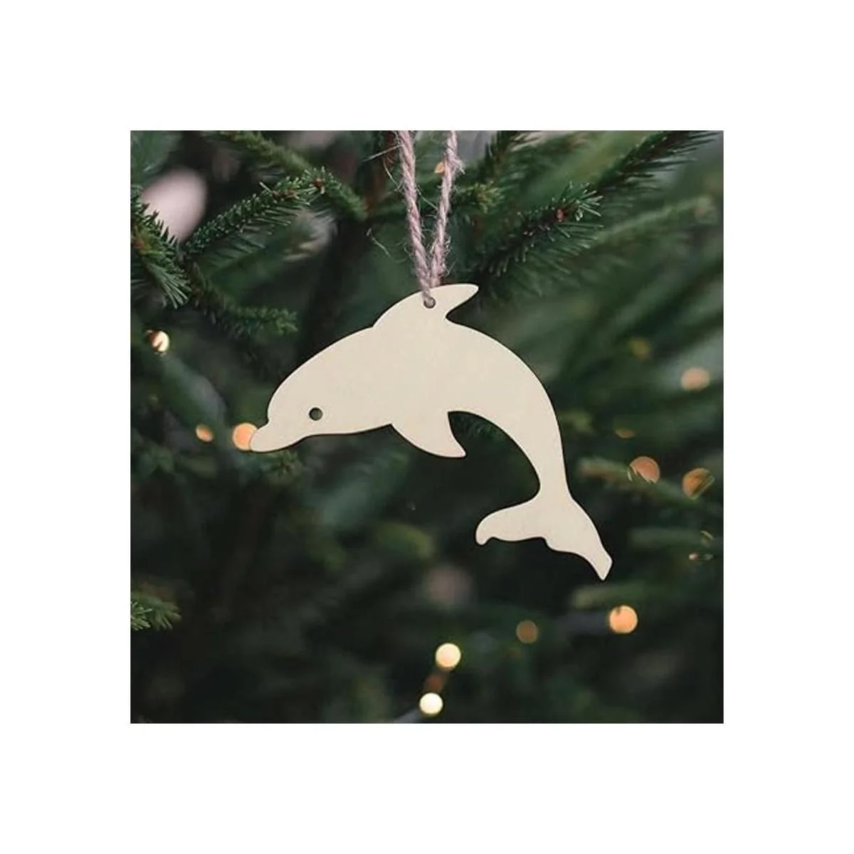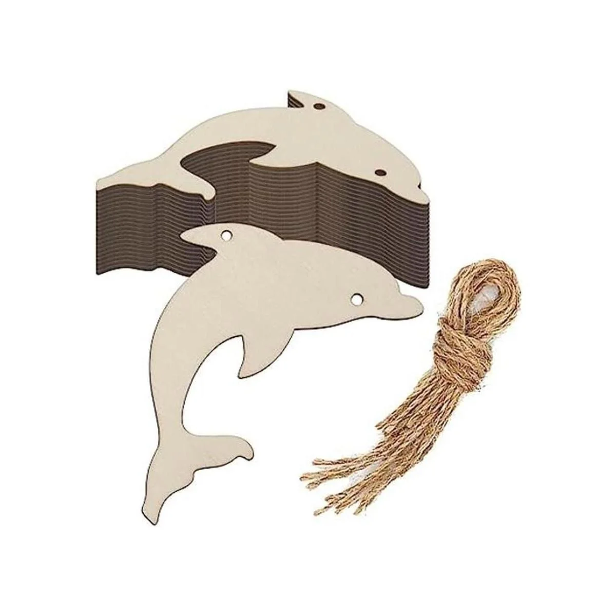 Adornos colgantes de madera en forma de delfín con agujero de cuerda de cáñamo, etiqueta de regalo perfecta para bodas, cumpleaños, océano, decoración de fiestas temáticas de animales 3.94 x 3.94 pulgadas, 20 unidades