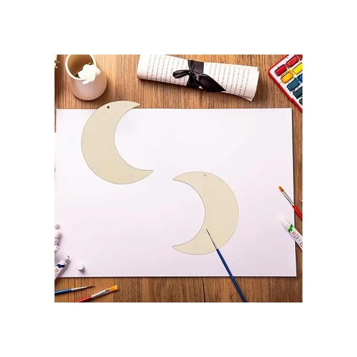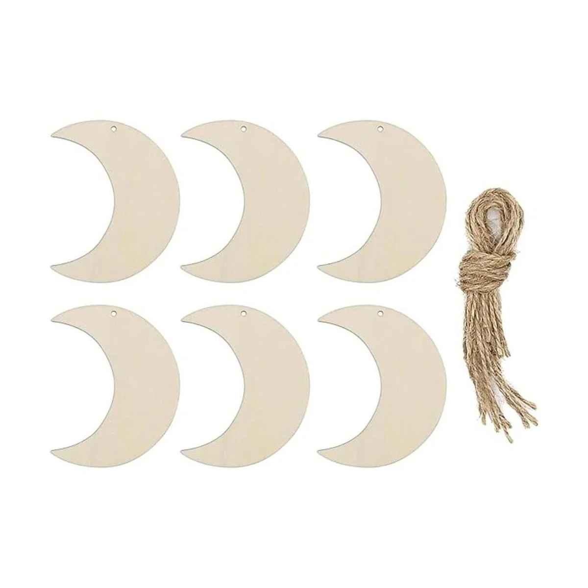 Adornos colgantes de madera en forma de luna, con agujero de cuerda de cáñamo, etiqueta de regalo para boda, cumpleaños, decoración de Navidad 2.5 x 3.94 pulgadas, 20 unidades