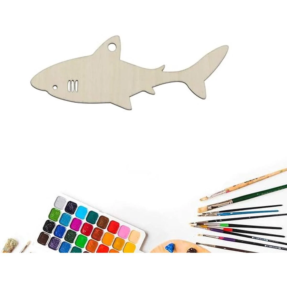 Características: diseño de madera en blanco con forma de tiburón para colgar, con un agujero y cuerda, se puede utilizar para colgar decoración. Perfecto para usar como etiquetas, tablero de fiesta, tablero de aula.