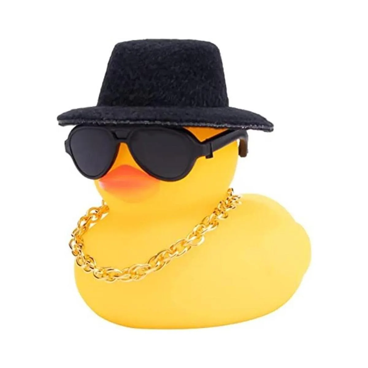 Adornos de goma para automóvil, decoración de tablero de pato amarillo con casco de hélice para decoración de Navidad y decoración del hogar para adultos sombrero negro X