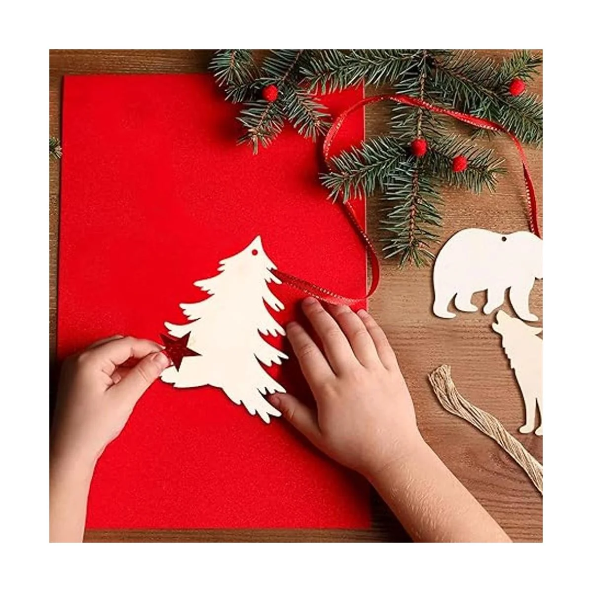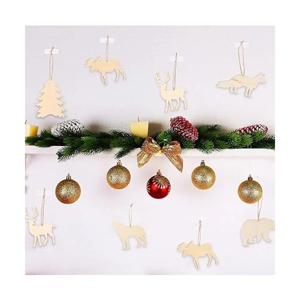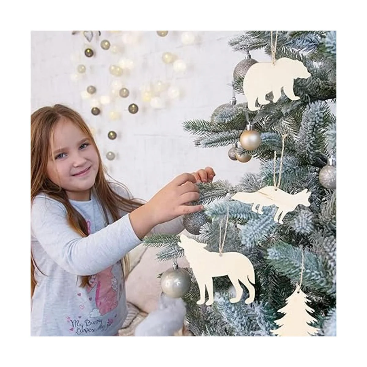 Varios diseños de patrones: los adornos colgantes sin terminar están diseñados en 6 patrones diferentes, incluyendo alce, árbol de Navidad, lobo, oso, etc., estos animales te recordarán los cálidos días de invierno y decorarán tu hogar con ellos para que te sientas cálido y acogedor
