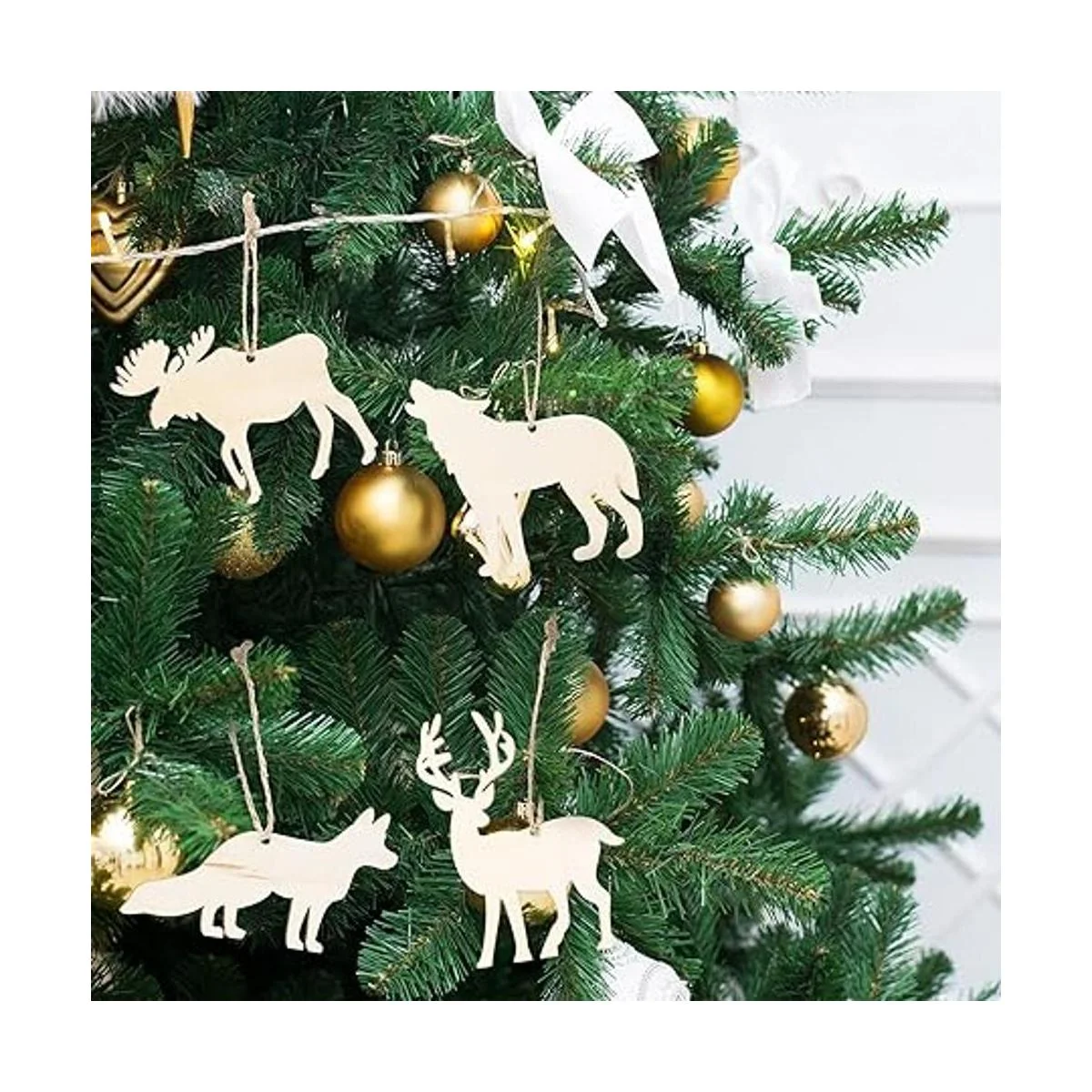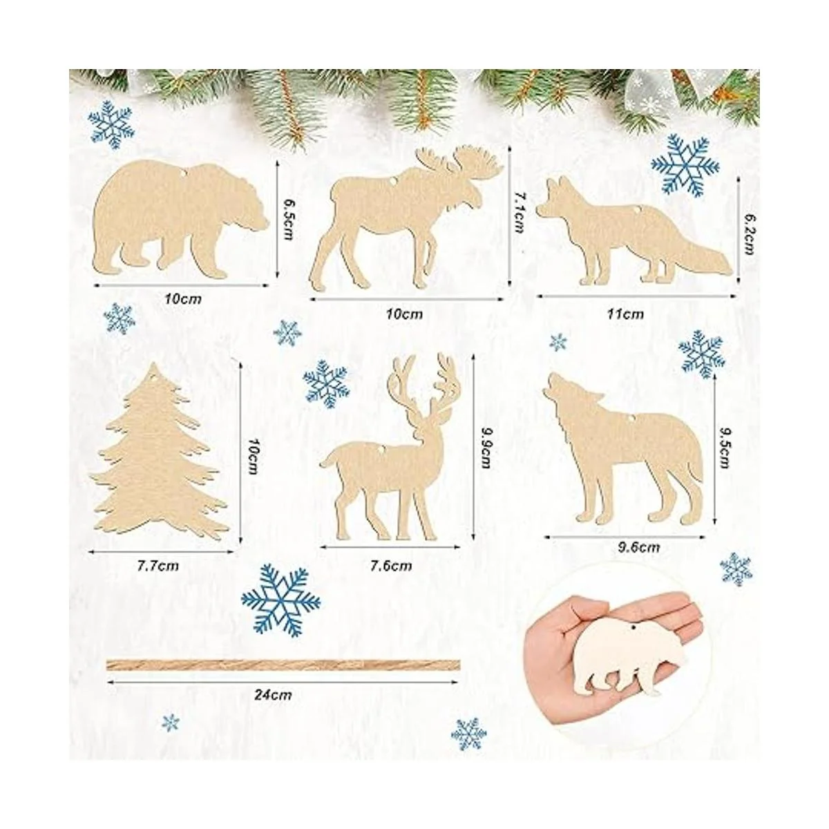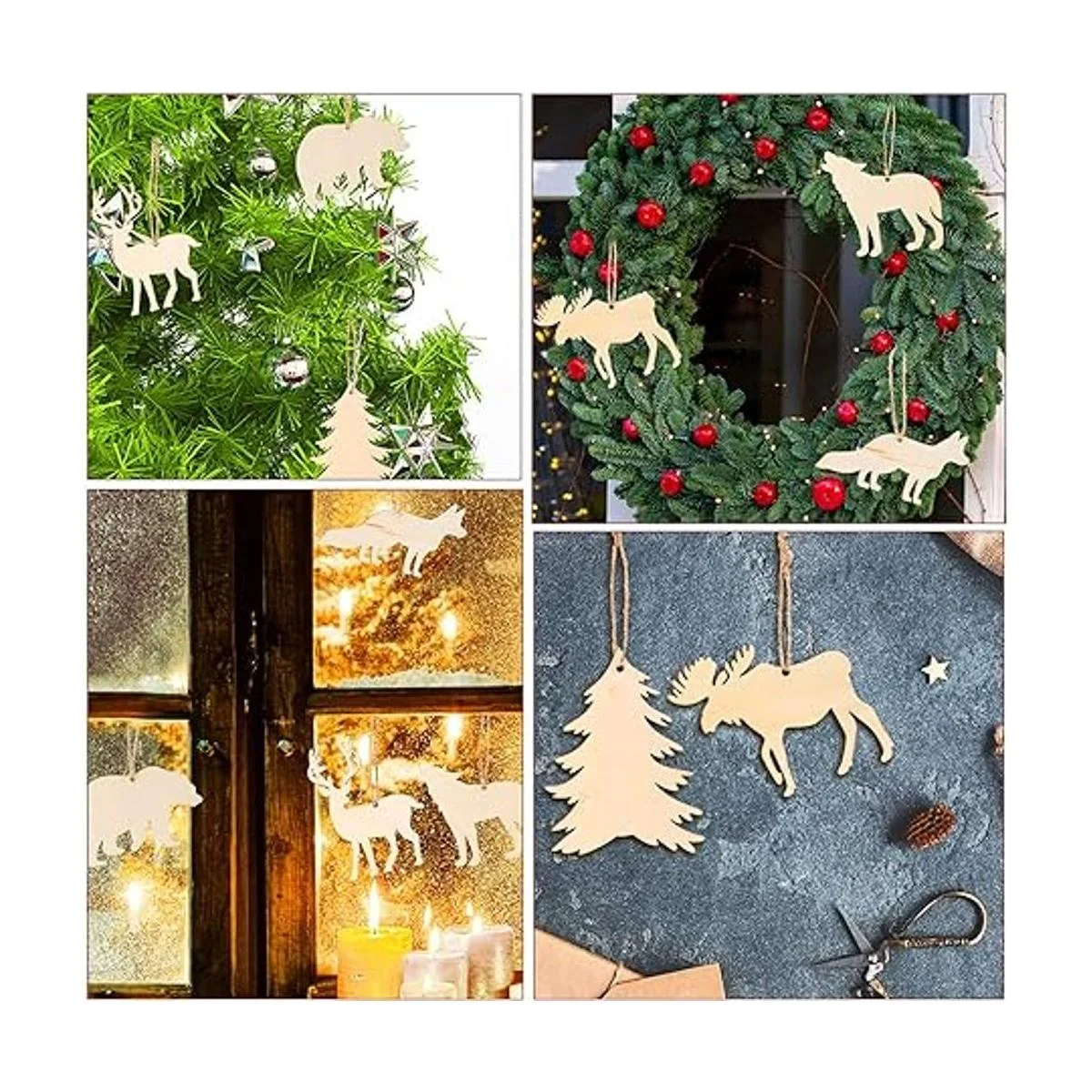 Adornos de madera, adornos de animales del bosque salvaje, adornos colgantes sin terminar, recortes de ciervos de madera, decoración de pared de animales, rebanadas de madera con cuerda para decoraciones colgantes de vacaciones 30 piezas