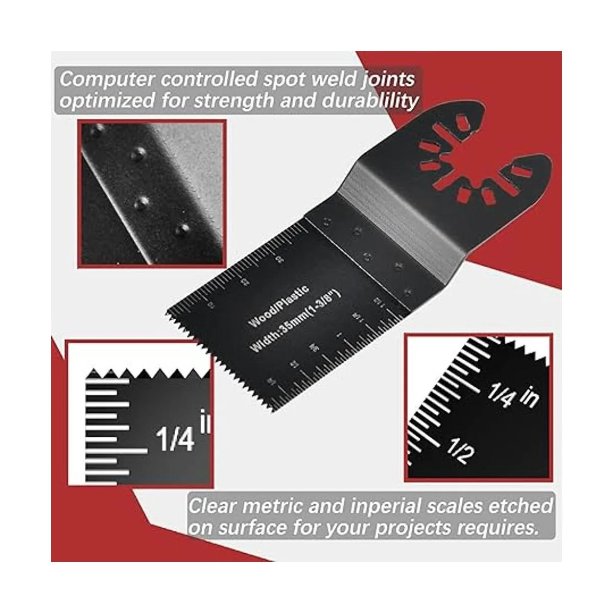 Diseño de marcas de longitud: marcas de longitud en ambos lados de las cuchillas multiherramienta y tienen pulgadas y centímetros, asegúrate de que obtendrás un corte preciso cuando utilices nuestras cuchillas multiherramienta.