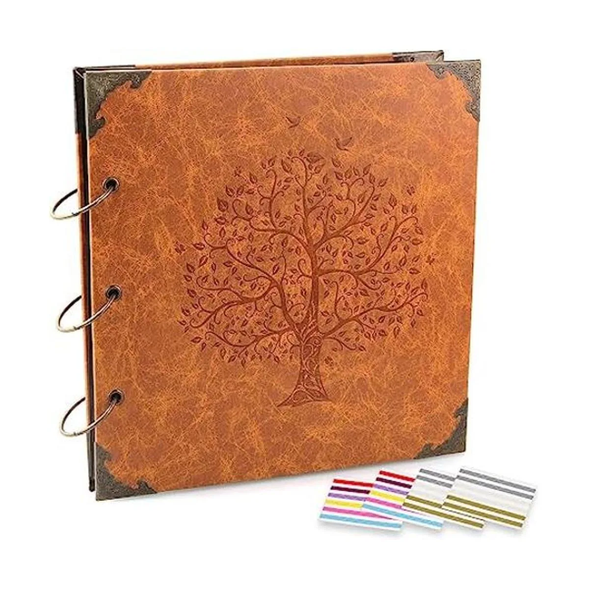 lbum de fotos vintage de alta calidad: este álbum de fotos de 3 anillos está hecho con una excelente cubierta de cuero sintético con patrón de árbol retro, protector de esquinas de cobre antiguo bien tallado y papel grueso de hojas sueltas negro.