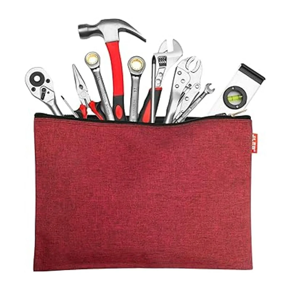 ADVcer Paquete de 5 bolsas de herramientas de lona con cremallera, 13.3 x 9.4 pulgadas, 14 onzas, resistentes al agua, multiusos, para organizar y clasificar herramientas domésticas, piezas de repuesto (5 colores)