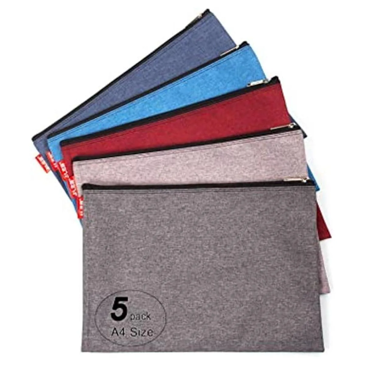 ADVcer Paquete de 5 bolsas de herramientas de lona con cremallera, 13.3 x 9.4 pulgadas, 14 onzas, resistentes al agua, multiusos, para organizar y clasificar herramientas domésticas, piezas de repuesto 5 colores