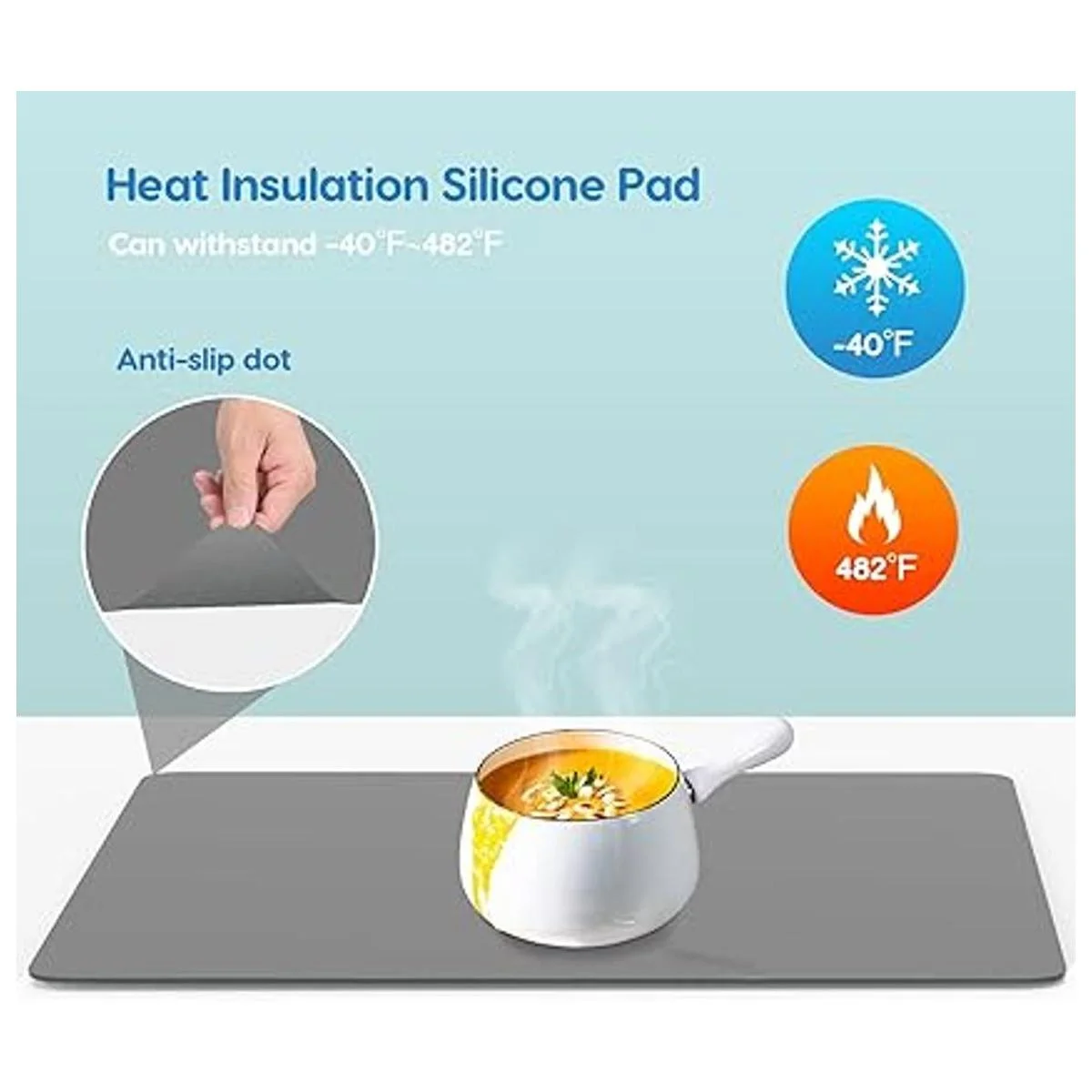 Saludable, de grado alimenticio : El tapete de cocina está hecho de silicona de grado alimenticio que puede entrar en contacto directo con los alimentos. Sin olor, apto para niños y bebés. Es reutilizable y ecológico. Tapete grande resistente al calor entre 40 F y 482 F. Protege las encimeras contra el calor de los electrodomésticos de cocina como microondas, freidora de aire y horno.