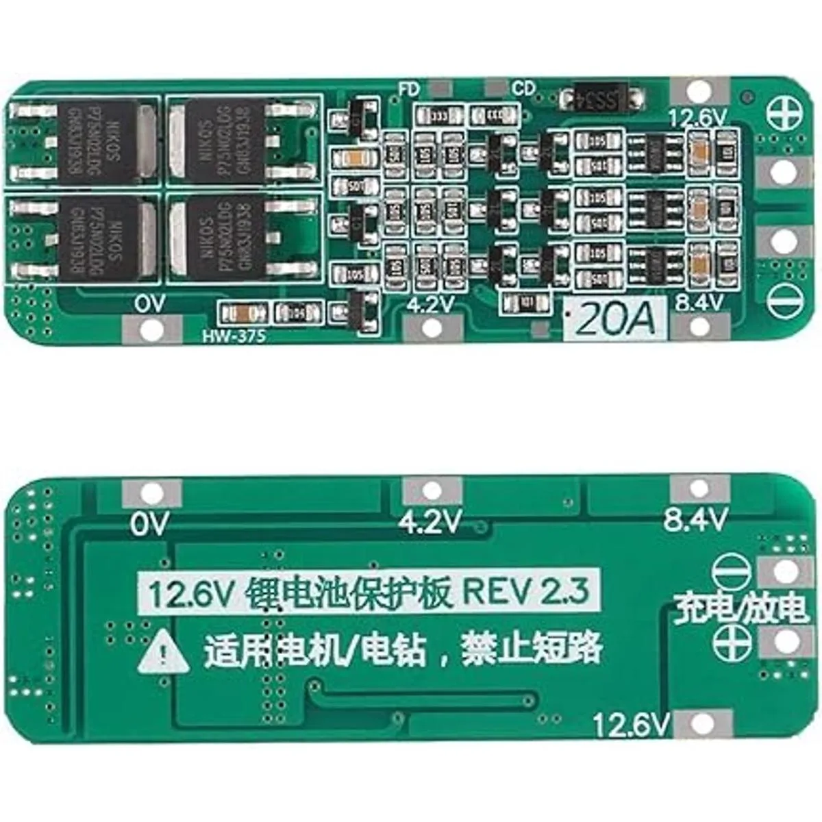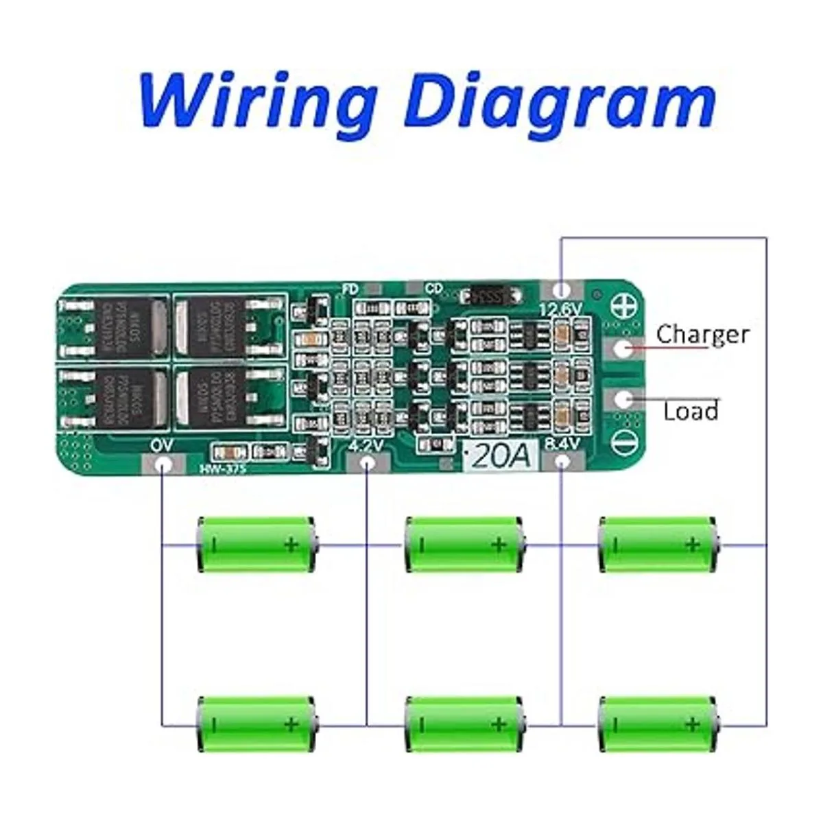 Voltaje de carga: 12,6 V; corriente de descarga continua límite superior: 20 A cuando el ambiente de disipación de calor no es bueno, por favor reduce la corriente de carga