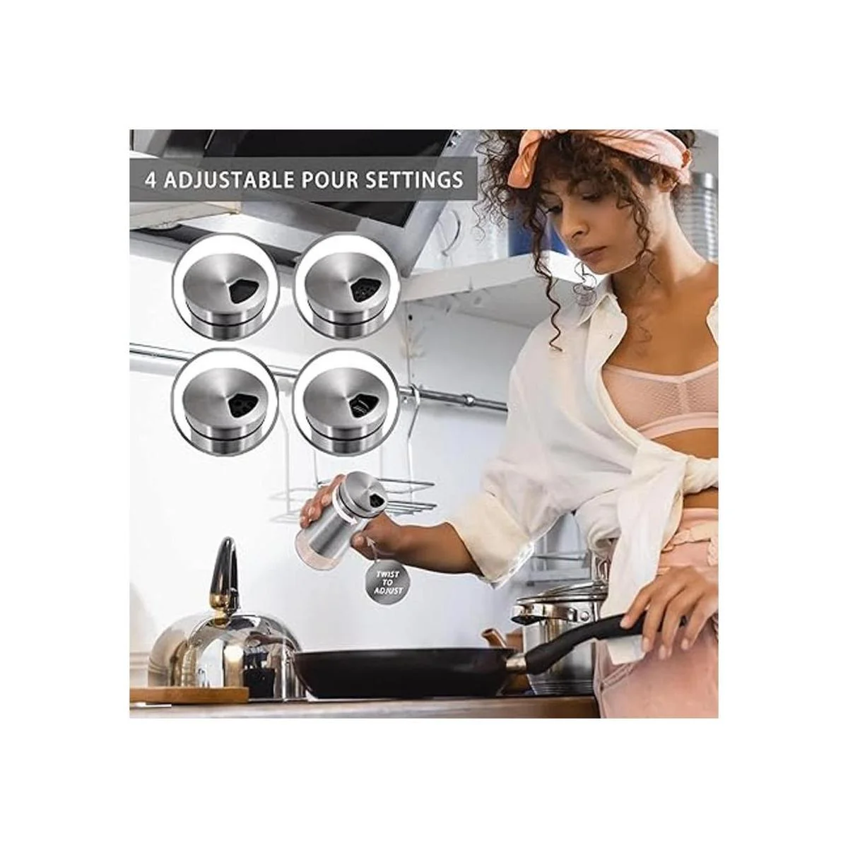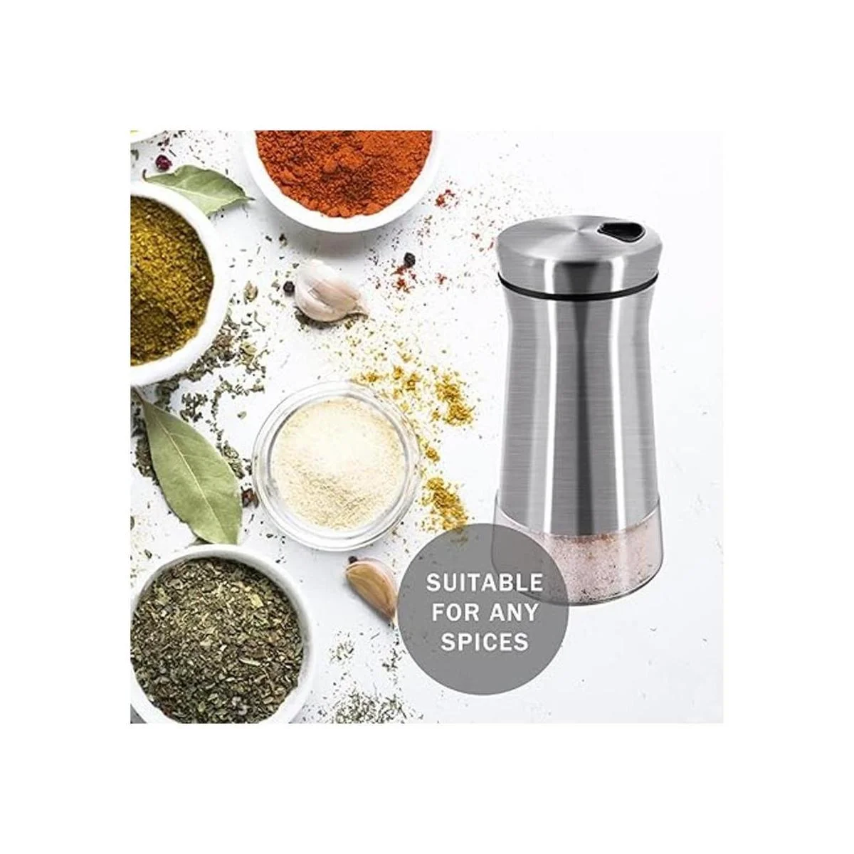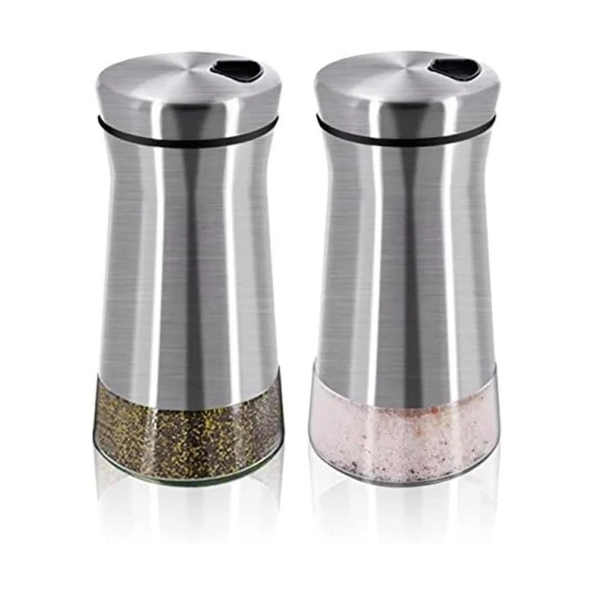 Material duradero y de alta calidad: los elegantes saleros y pimenteros están compuestos de vidrio de alta calidad, carcasa de acero inoxidable de grado alimenticio y tapa de plástico sin BPA. Este juego viene con dos cocteleras diseñadas para sal de mesa regular y pimienta molida, pero también puede acomodar especias finas y gruesas.