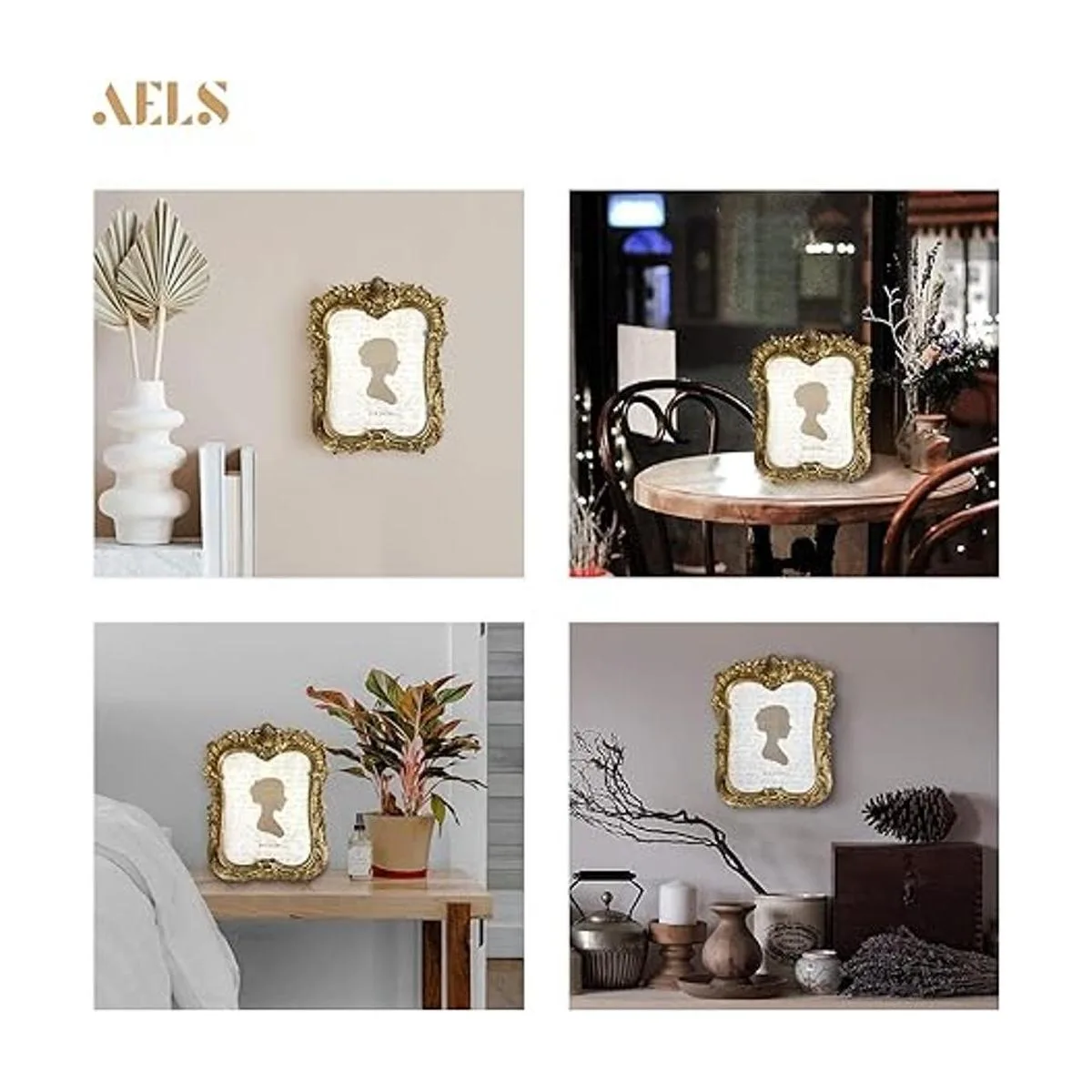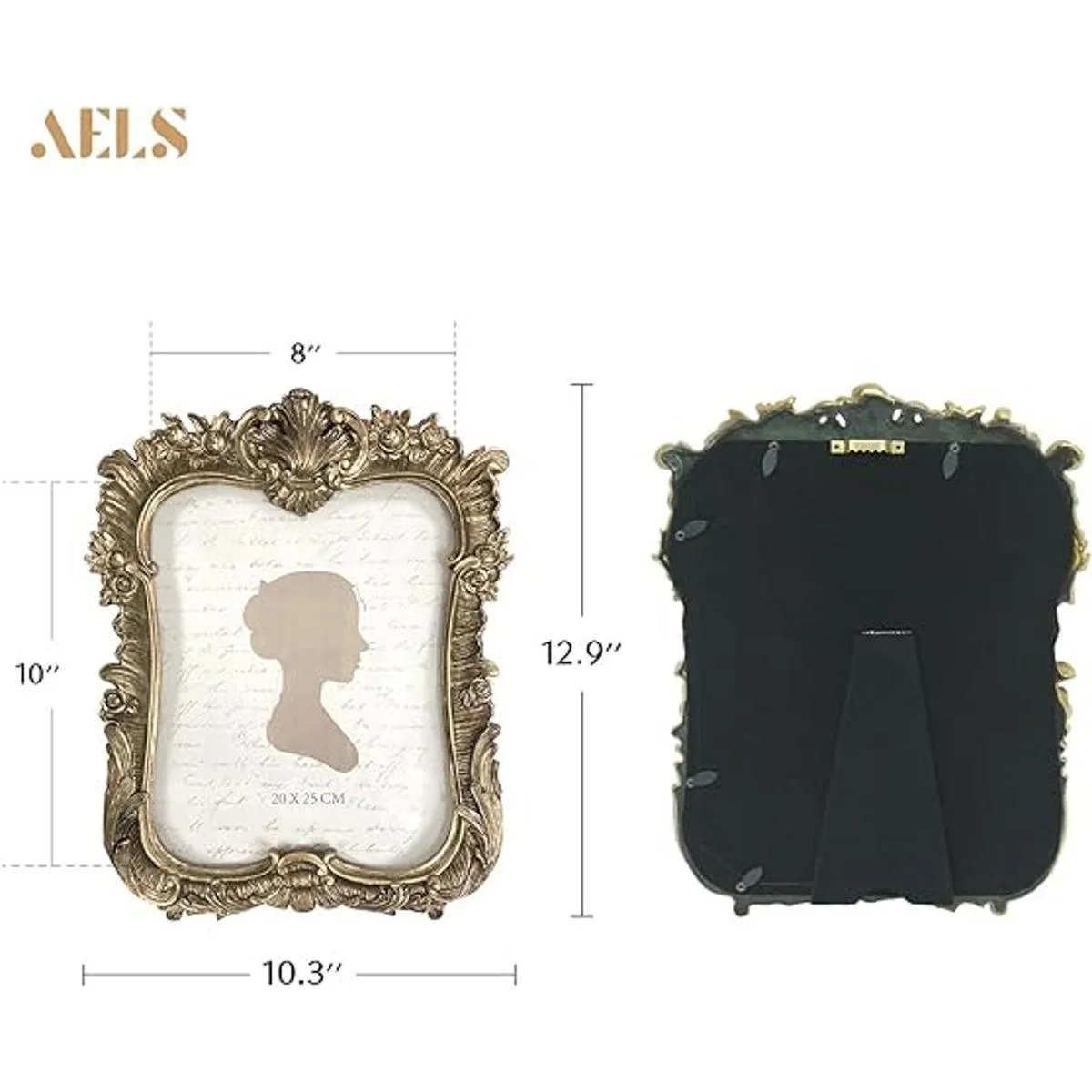 AELS Marco de fotos vintage de 8 x 10 pulgadas, elegante marco de fotos antiguo de lujo con frente de cristal, pantalla de fotos, colgar en la pared de mesa, ideas de regalo, dorado