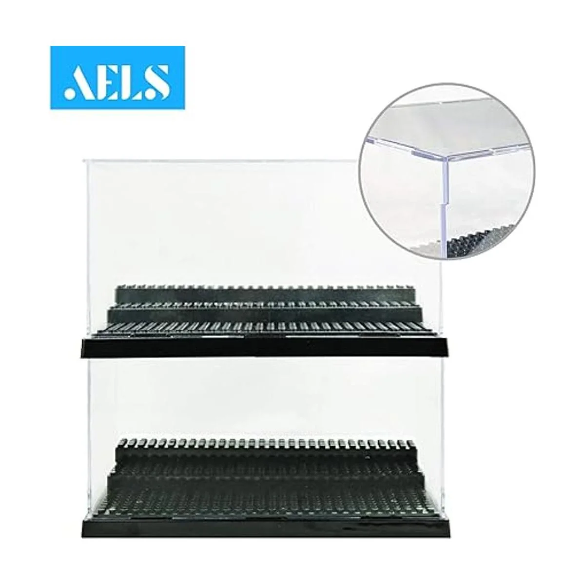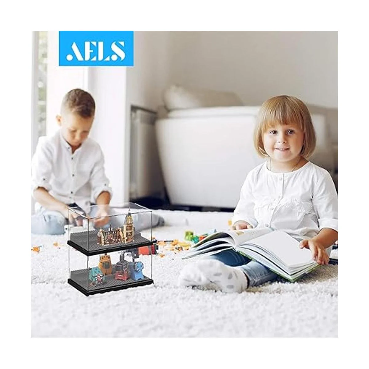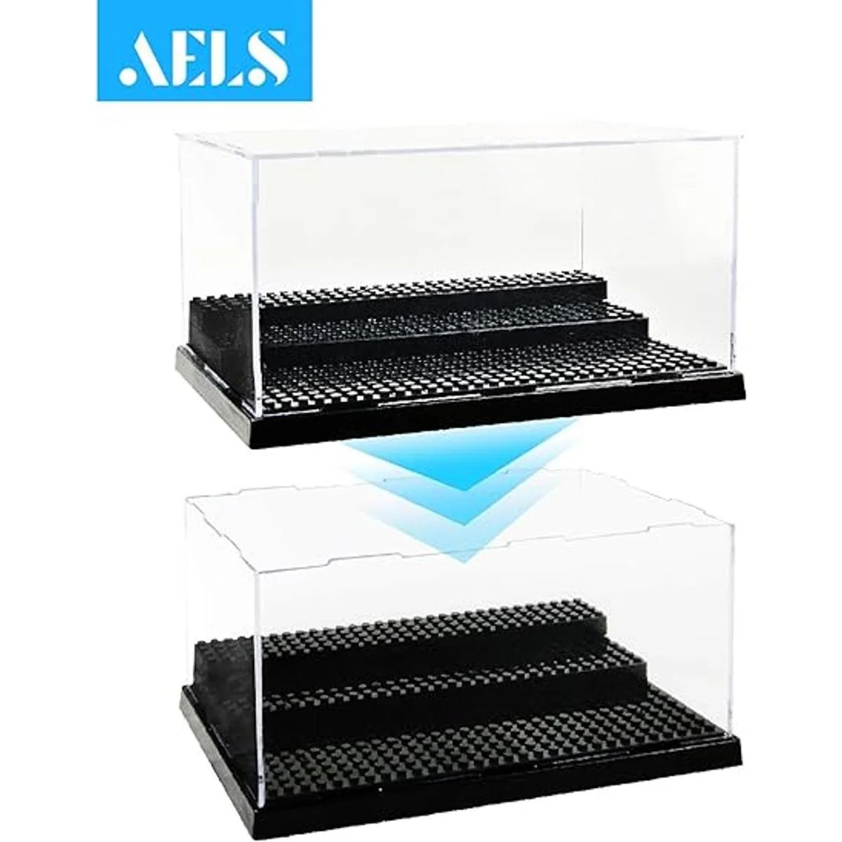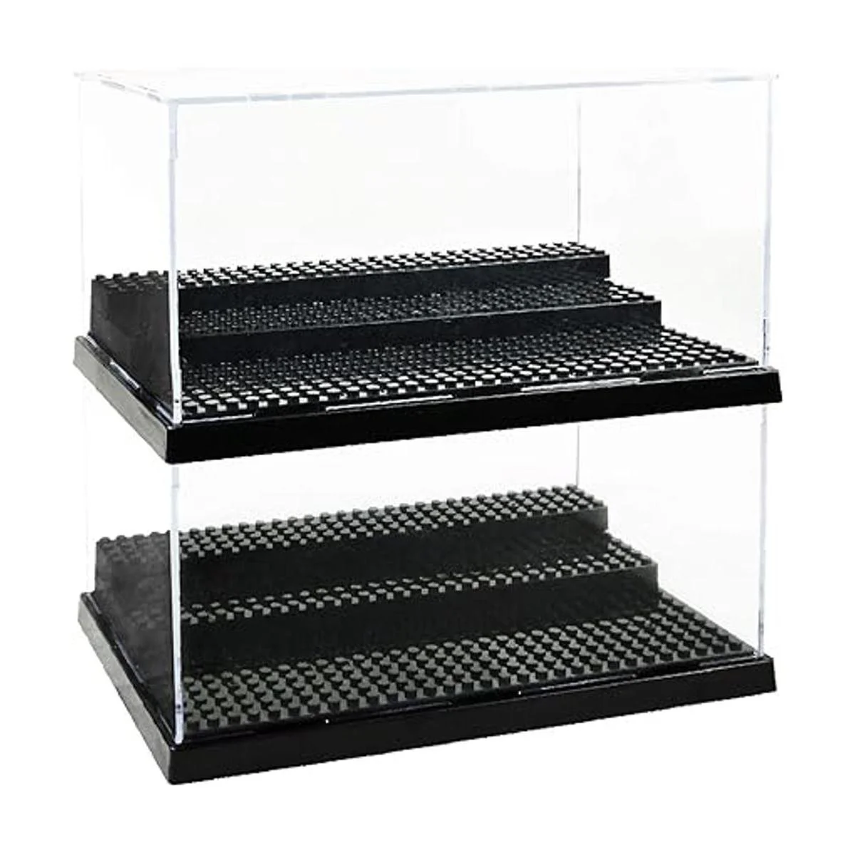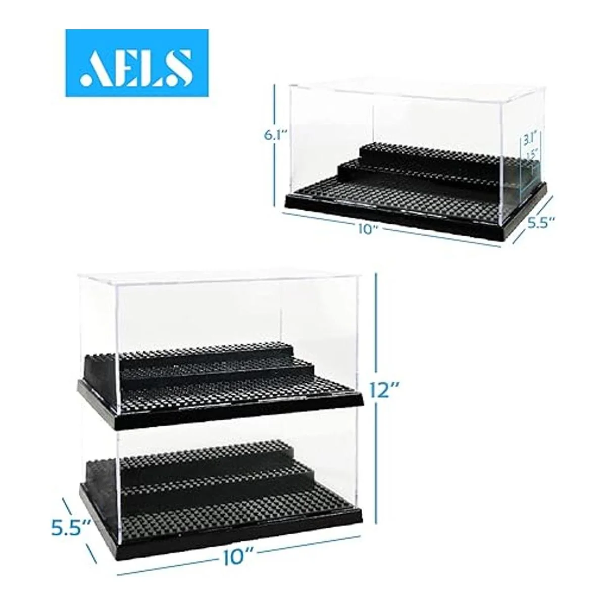 AELS Vitrina acrílica de 3 niveles, juego de 2, vitrina a prueba de polvo para colección, bloques de ladrillos, juguetes, modelos, minifiguras de construcción, transparente, extraíble