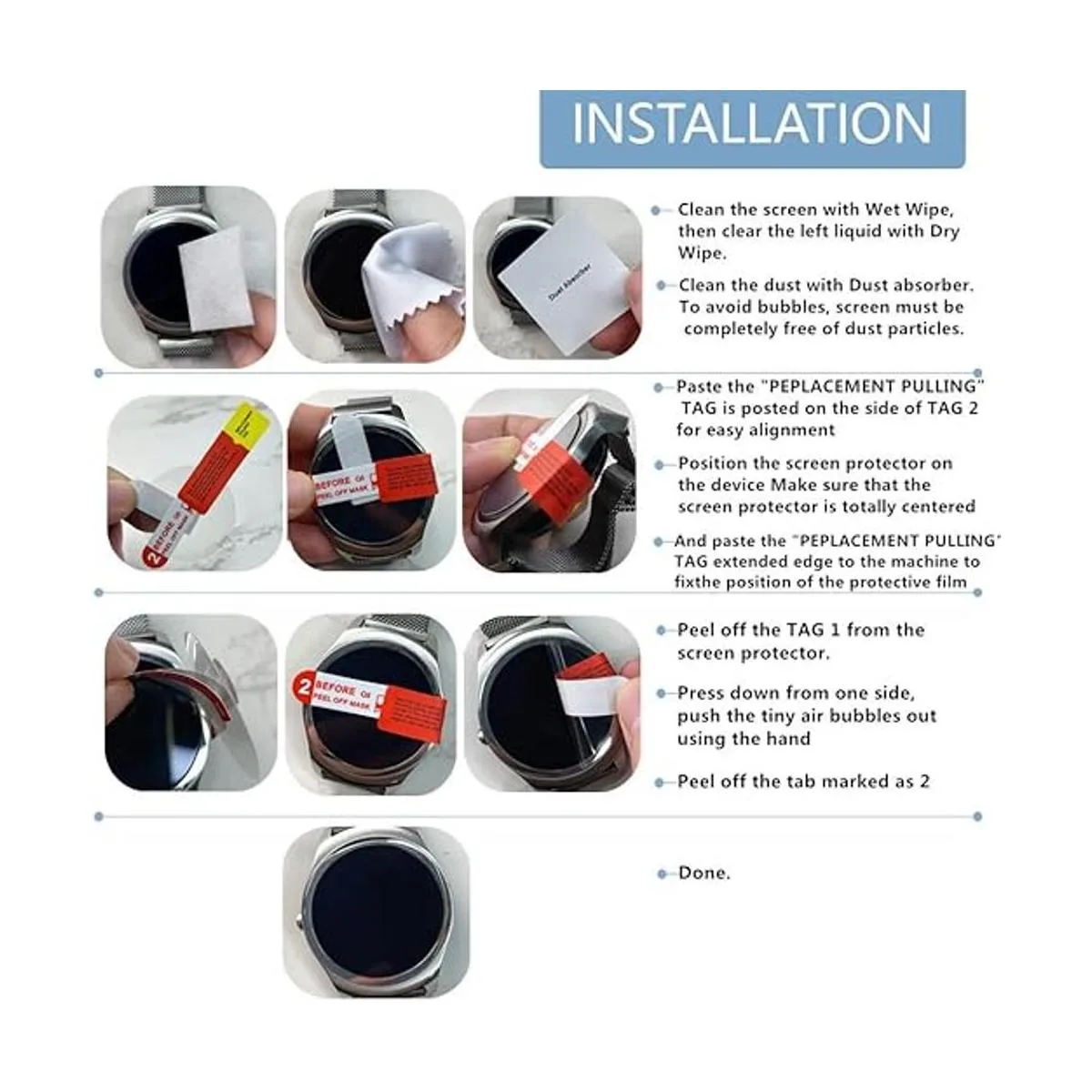 Fácil de instalar: adopta un típico protector de pantalla PET de adherencia estática, fácil instalación. El paquete viene con herramientas de instalación, sigue la etiqueta de pasos de la película protectora para instalar.