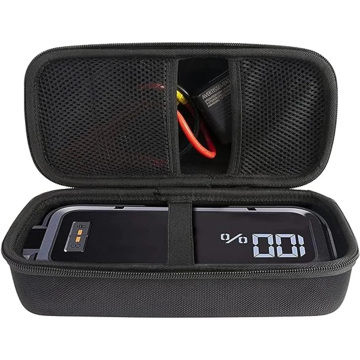 Esta funda rígida de viaje está equipada con cremalleras de metal, cremalleras empotradas para minimizar la humedad o la suciedad/polvo que entra en la funda, y proporciona un fácil acceso para quitar tu reemplazo del arrancador Hulkman 8.5, compartimento de malla elástica en la tapa es para el cable de carga USB y algunos más pequeños equipos de supervivencia, mantiene los accesorios y reemplazo para el arrancador de salto Hulkman por separado y proporciona una protección perfecta para tu coche de litio.