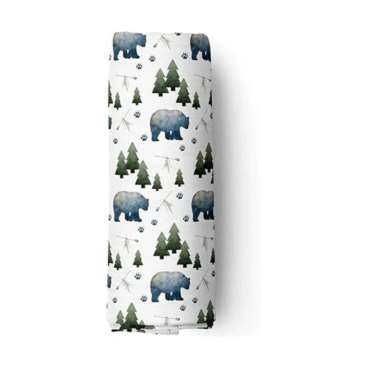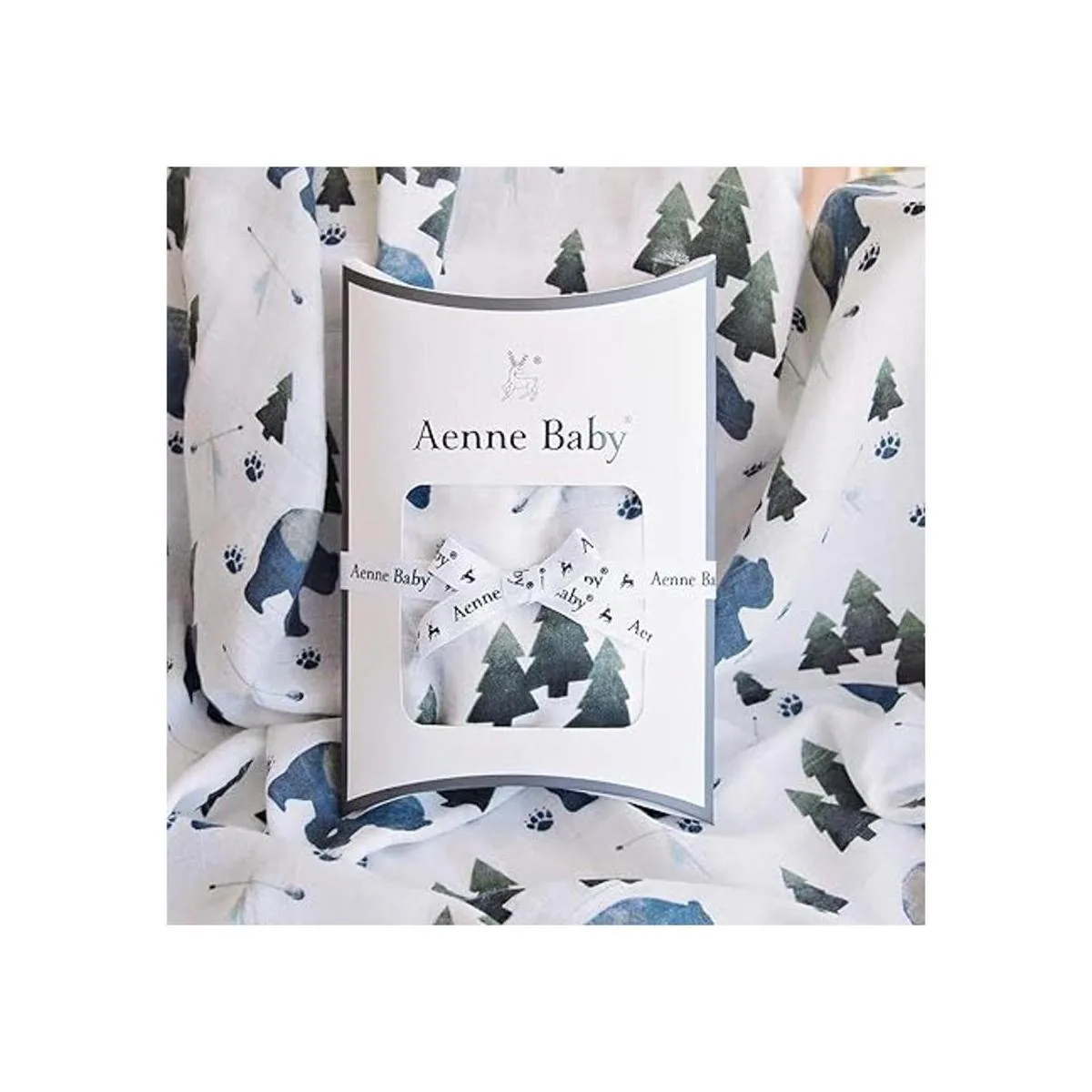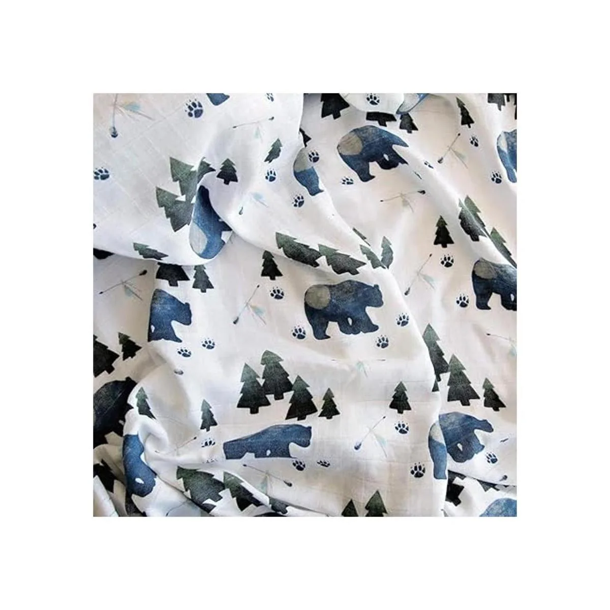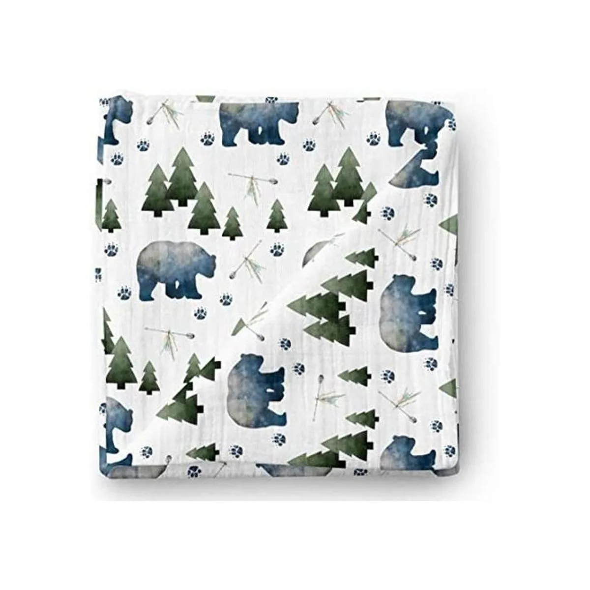 AENNE BABY Manta de muselina para envolver niños y niñas, colcha de lujo, suave y sedosa para cochecito y lactancia, oso tribal en el bosque, tamaño grande, 47 x 47 pulgadas, 1 paquete