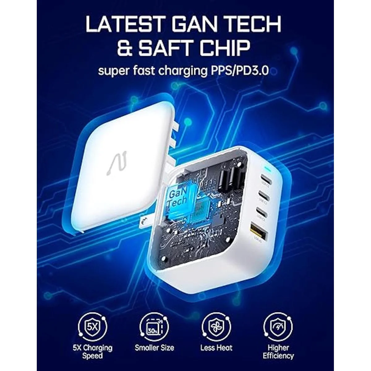 Aergiatech Cargador de pared USB C, 100 W, 4 puertos, PD3.0 PPS GaN tipo C, estación de carga rápida, adaptador portátil, plegable USB C para MacBook ProAir, iPad, iPhone 13, Samsung, Pixel, laptop