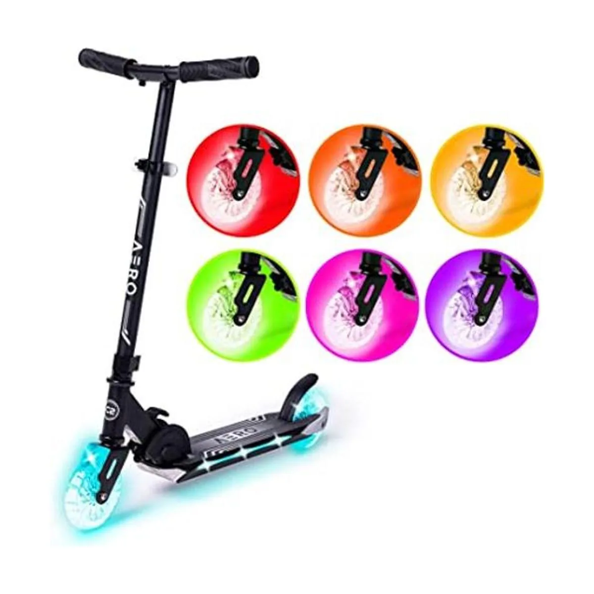 Aero Kick Scooter for Kids Ages 612 with Dynamic RGB Lights, Foldable and Height Adjustable, 2 Wheel Scooters for Kids 6 Years and up with Glowing Deck and Light up Clear Wheels