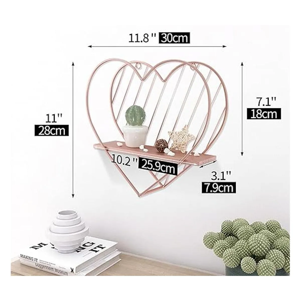Afuly Estantes flotantes de oro rosa pequeño estante montado en la pared de metal con diseño de corazón rosa de almacenamiento, estante romántico de amor, dormitorio, cocina, baño, sala de estar, decoración única y bonita para la habitación del bebé