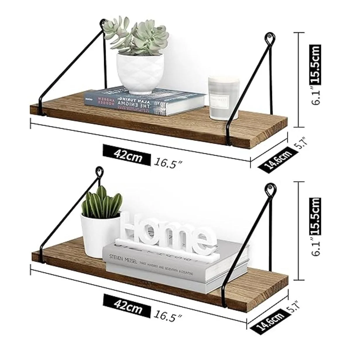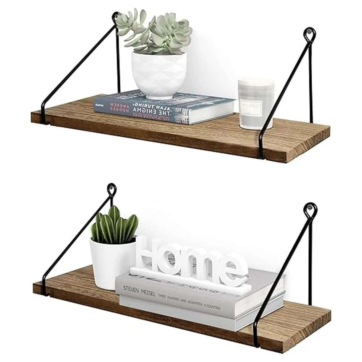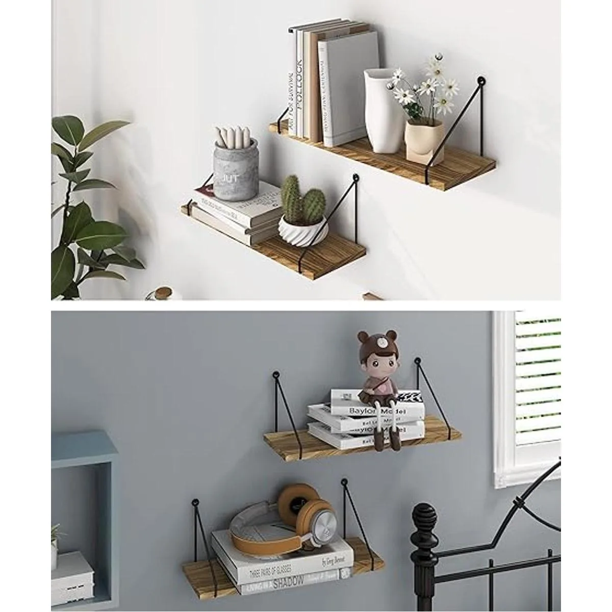 Afuly Estantes flotantes, estantes rústicos de pared, estantes colgantes de pared, estantes de pared para baño, cocina, comedor, sala de estar, madera de metal, juego de 2 soportes para pared