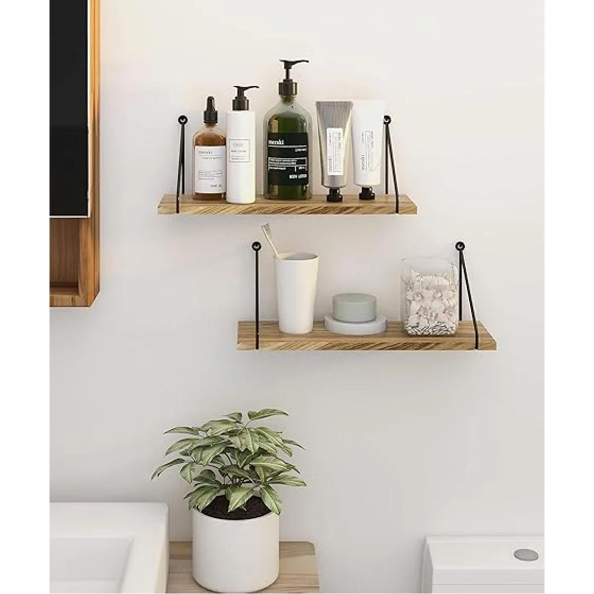 Estilo rústico del país: este estante flotante tiene un diseño simple con madera clara y esquema de color negro, que es adecuado para una variedad de lugares y estilos de decoración. Aporta un toque cálido y natural a una pared vacía de tu baño, cocina, dormitorio, comedor, etc.