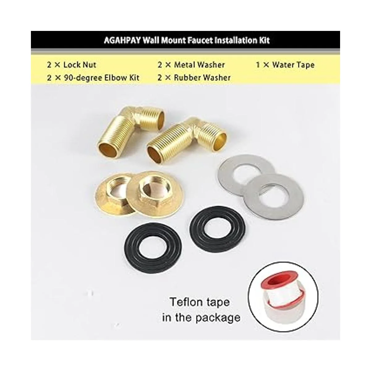 AGAHPAY Kit de instalación para montaje en pared grifo de fregadero de cocina comercial, kit montado en el salpicadero, adaptador de conector para fregadero de cocina comercial de acero inoxidable, G12, latón macizo