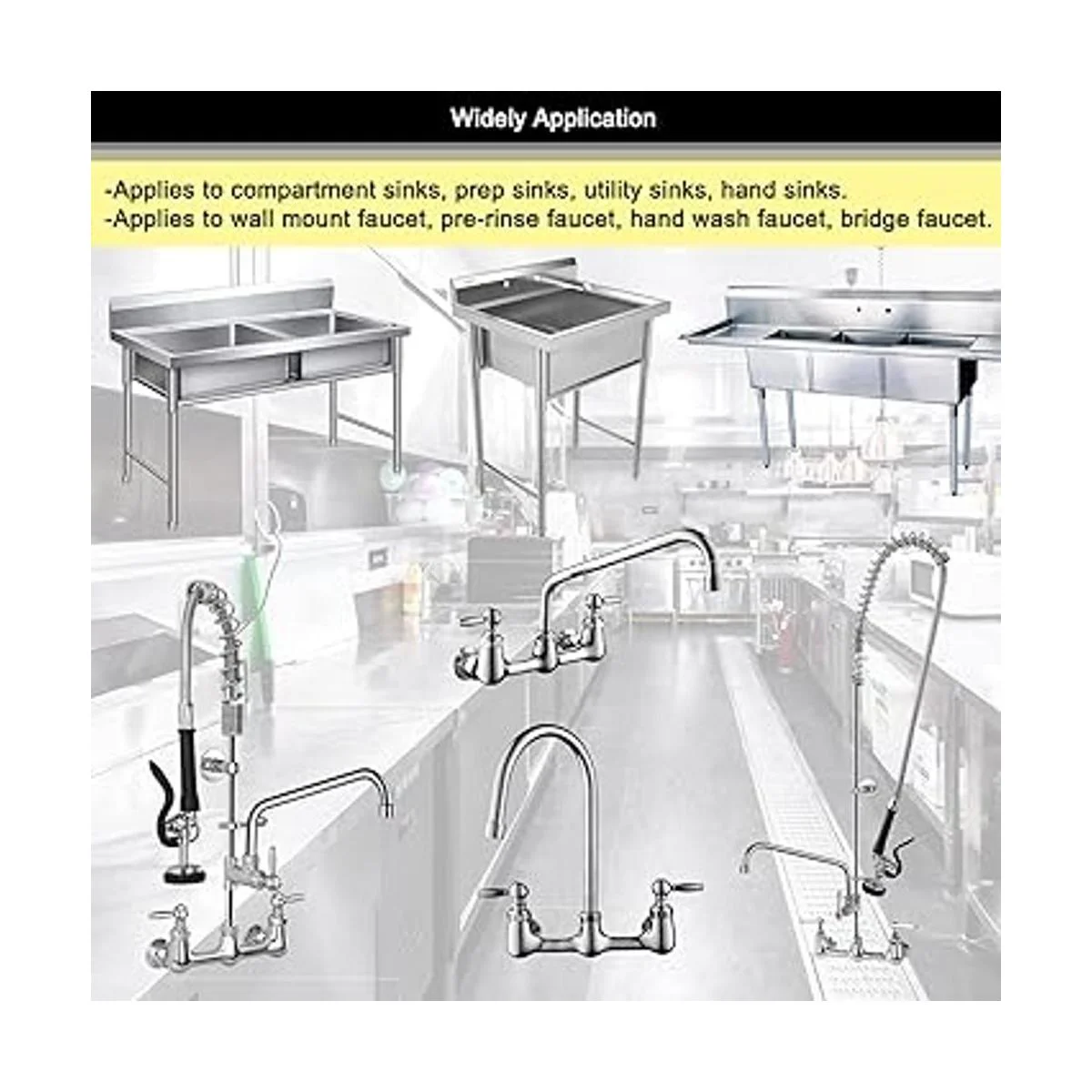 Componentes comunes: sin duda. Este kit de montaje contra salpicaduras se puede instalar en todas las marcas de grifos de fregadero de cocina comercial montado en la pared, grifo de servicio con extremo hembra G1/2.