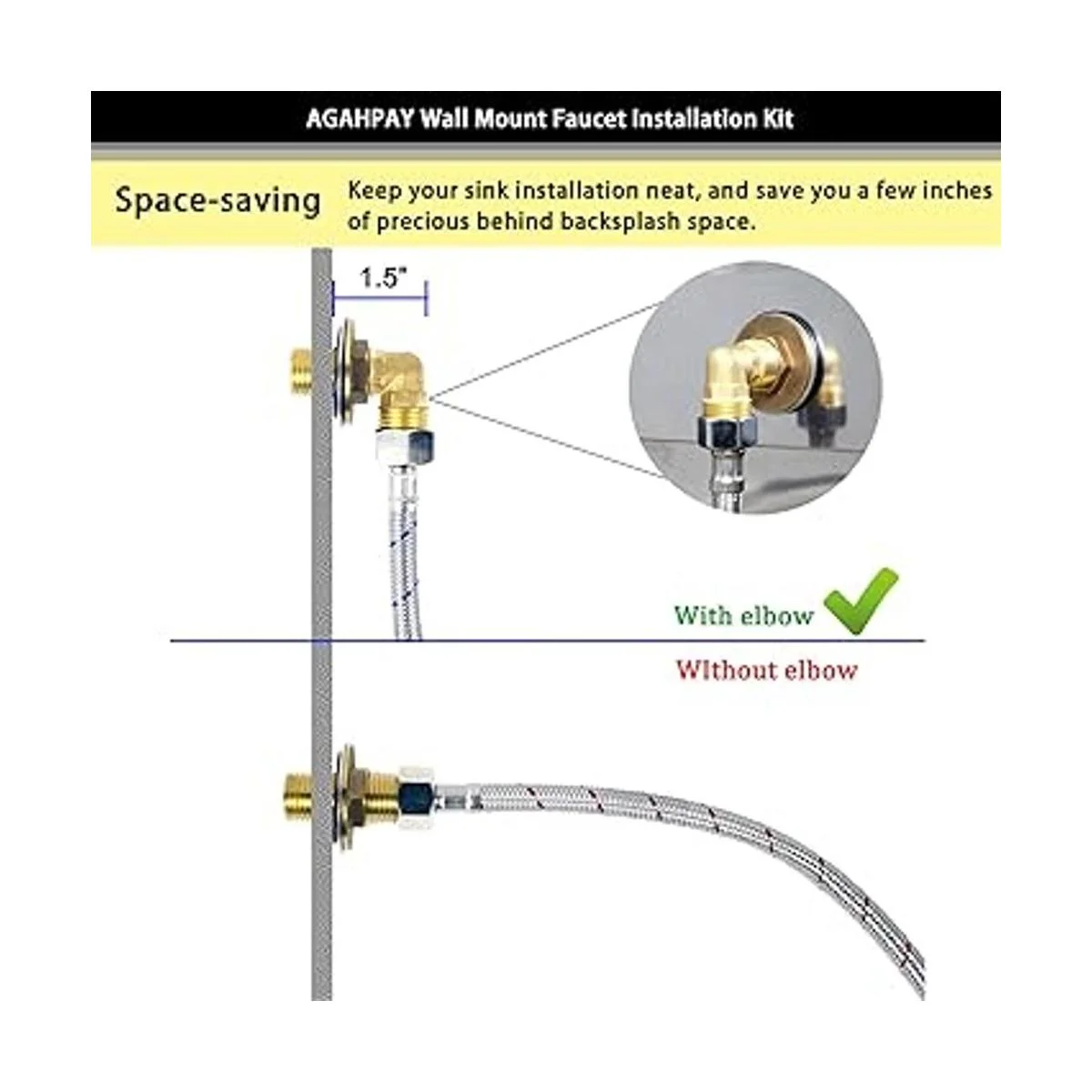 Fácil de instalar: solo necesita 5 minutos por bricolaje. Conecta el extremo más largo a la parte posterior del grifo de cocina de montaje en pared y el extremo más corto a la línea de agua, contra lavados en la parte posterior del fregadero de acero inoxidable mediante tuercas de bloqueo para asegurar el grifo. Consejos: se sugiere aplicar una capa de sellador de hilo suave en las roscas en lugar de cinta de teflón para evitar fugas.