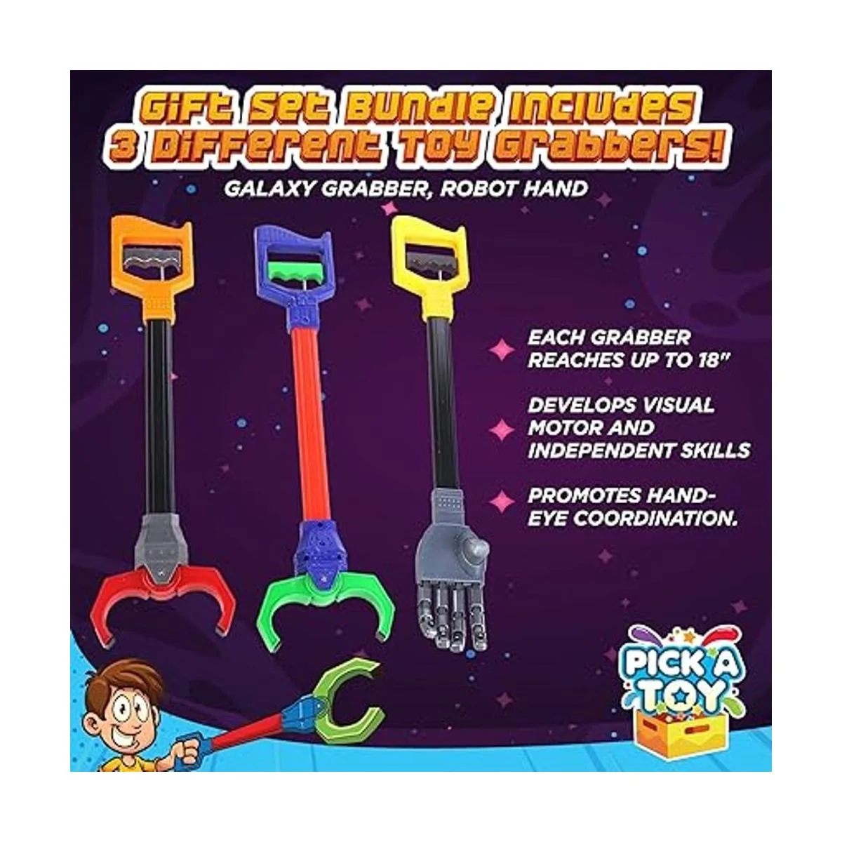 Agarrador interactivo de juguetes, mano robot y garra robótica, juego de 3 piezas, divertido aprendizaje temprano y juego de coordinación ojomano, brazo largo de 18 pulgadas, herramienta de agarre fuerte