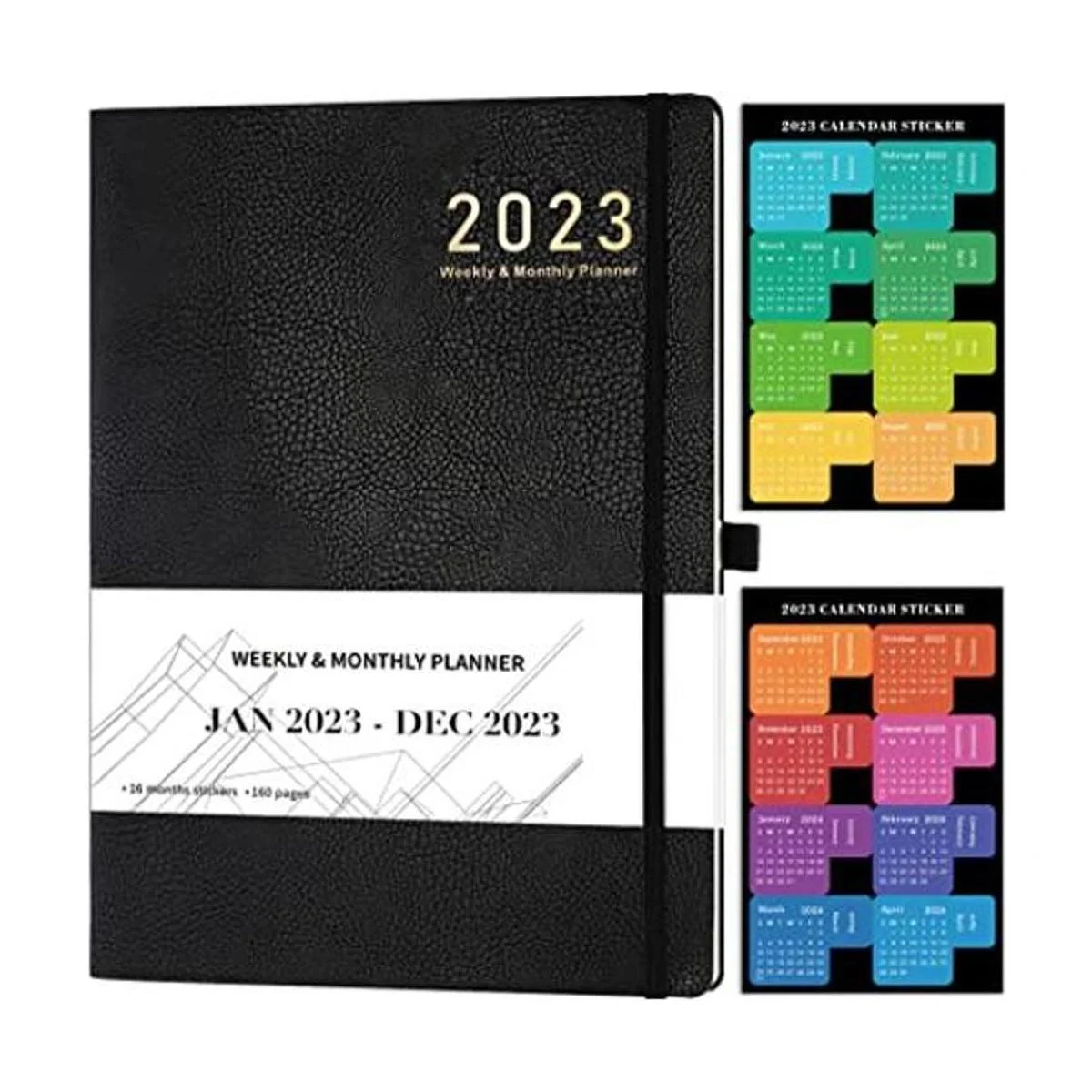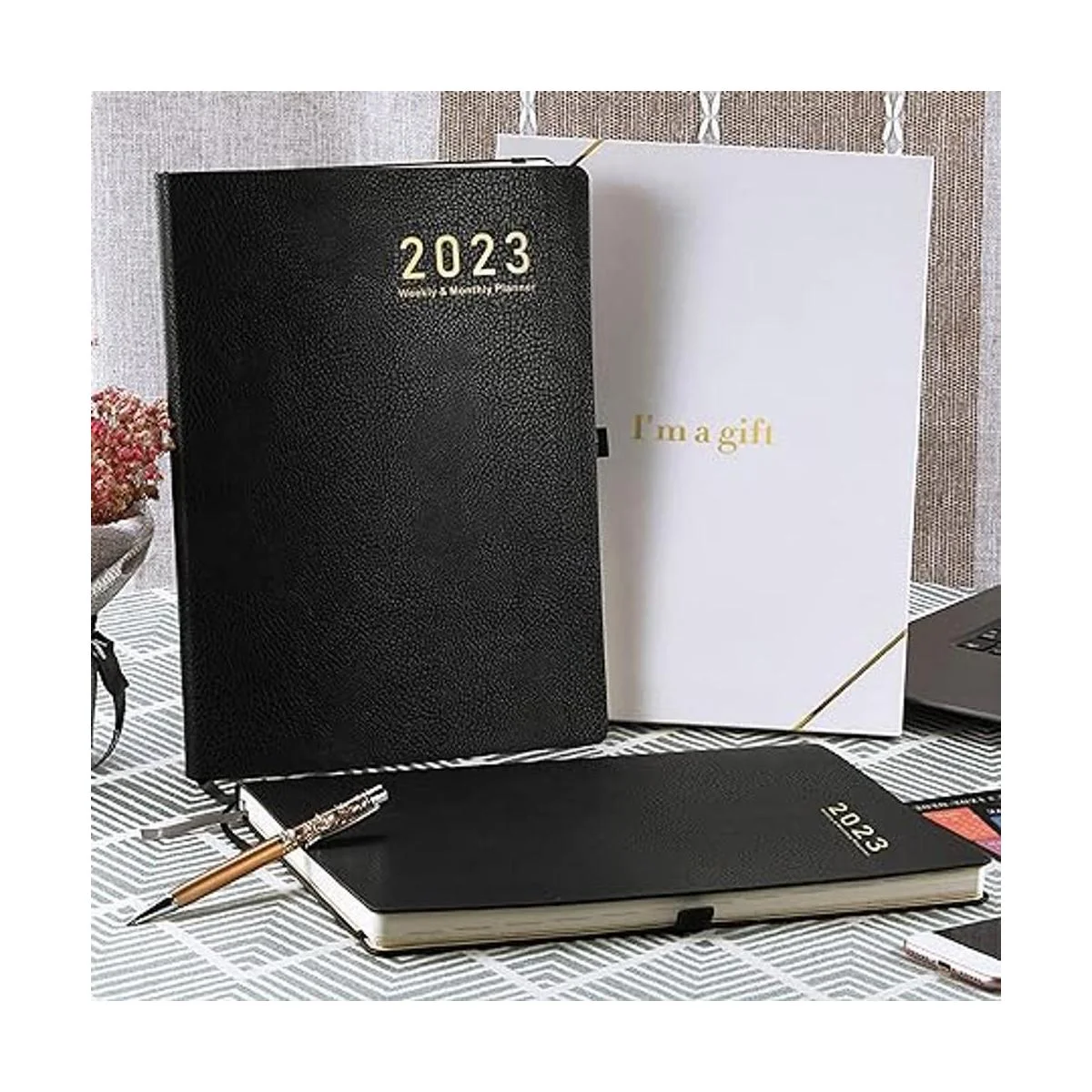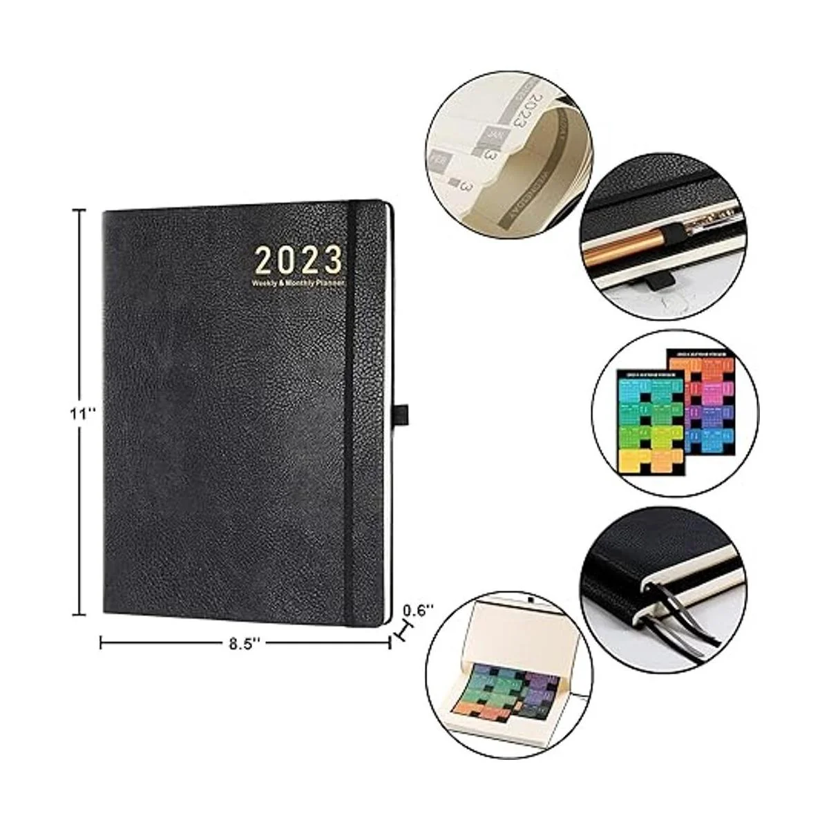 Agenda 2023 Agenda semanal y mensual 2023, enero de 2023 a diciembre de 2023, 8.5 x 11 pulgadas, cubierta de cuero suave con papel grueso, bolsillo trasero con 24 páginas de notas, color negro