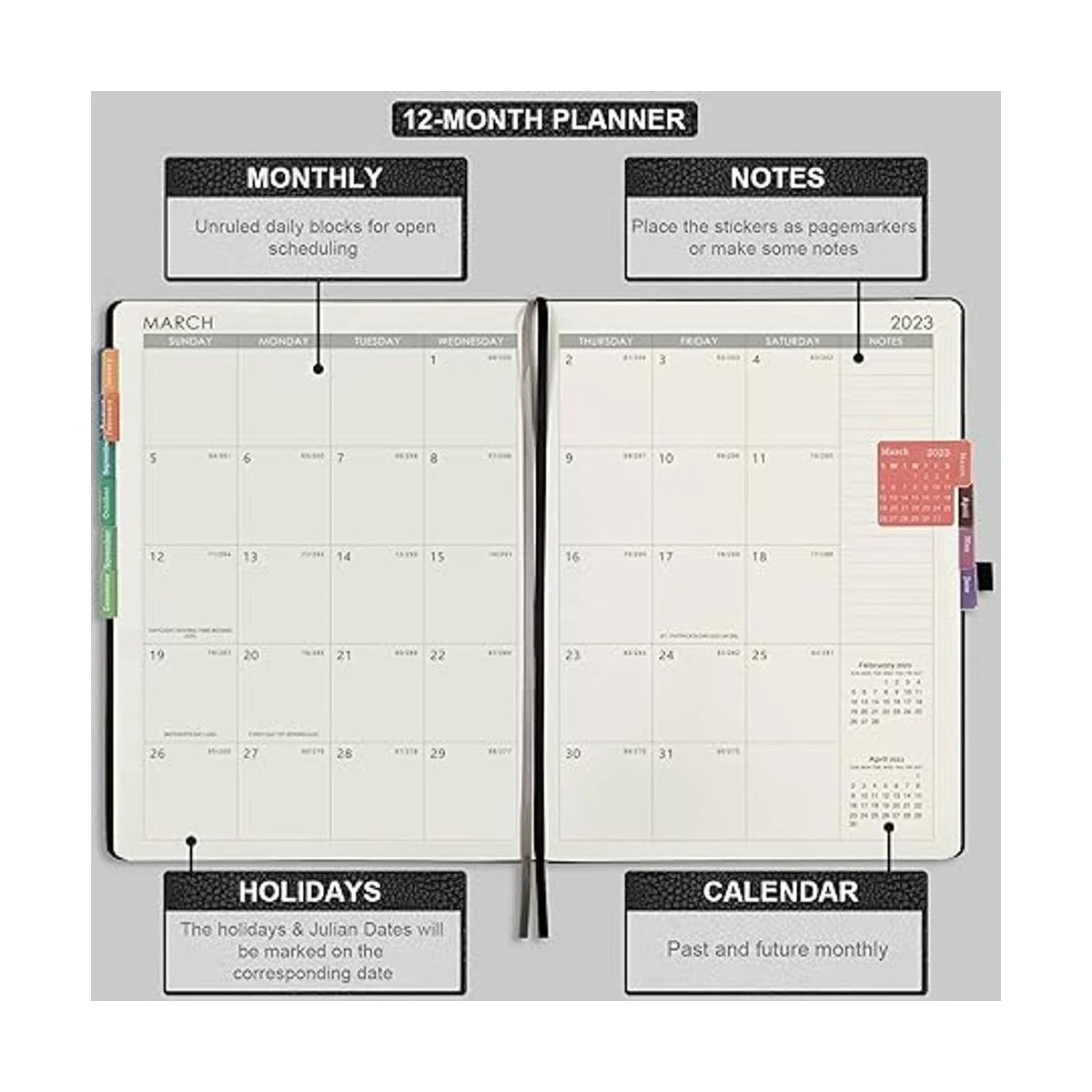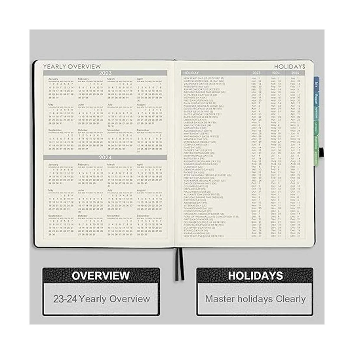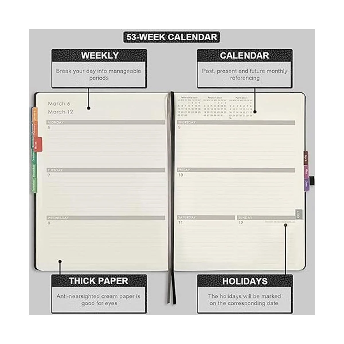 Cubierta de piel suave y duradera, excelente textura. Los días festivos anuales 20232024 te permiten dominar las vacaciones claramente. La agenda ofrece páginas mensuales sin rayas/diseños semanales rayados para una planificación detallada.