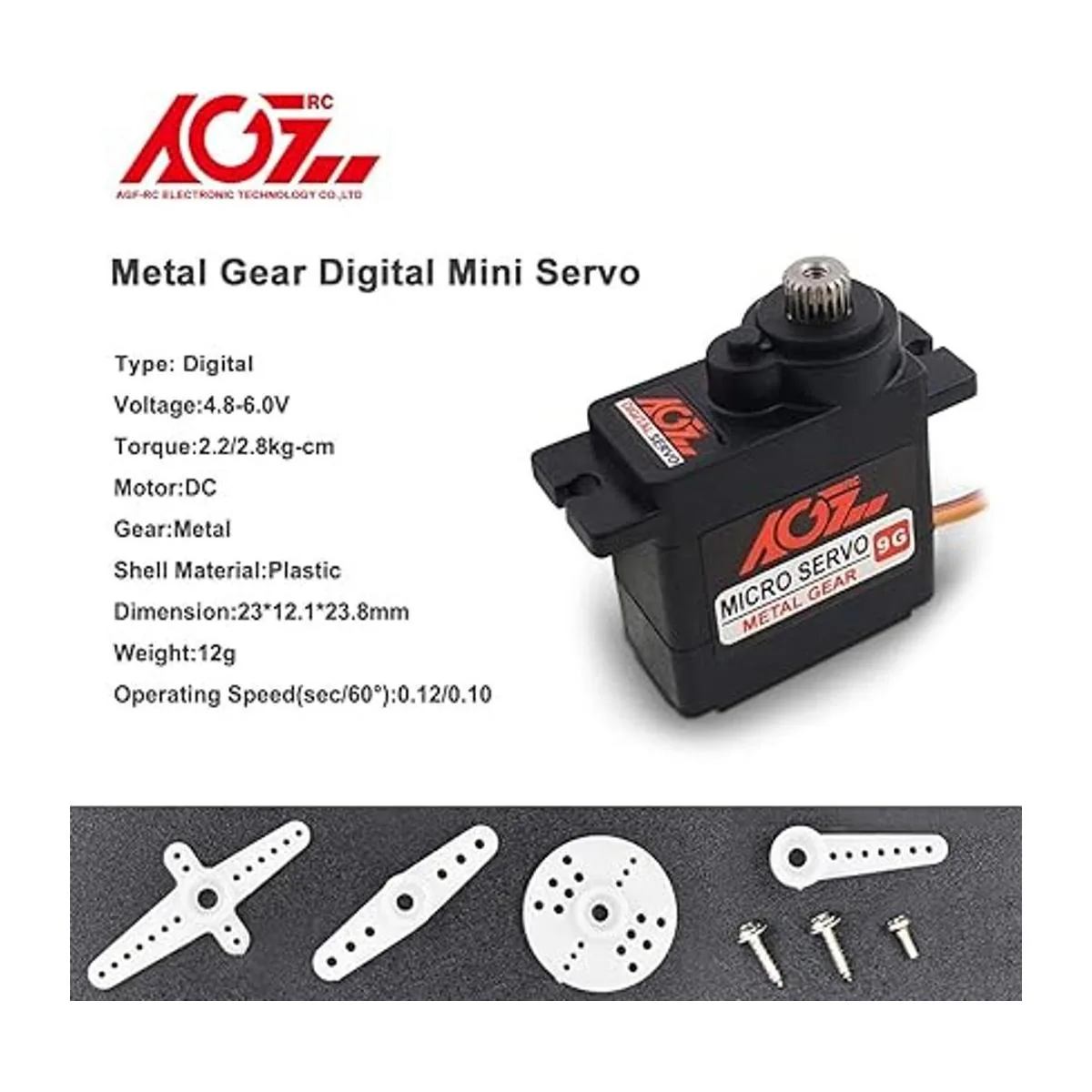 AGFRC Kit de servomotor de microservomotor de 0.32 oz, digital de 0.39 oz, mini servo para control remoto de helicóptero, avión, barco, ángulo de control de 180