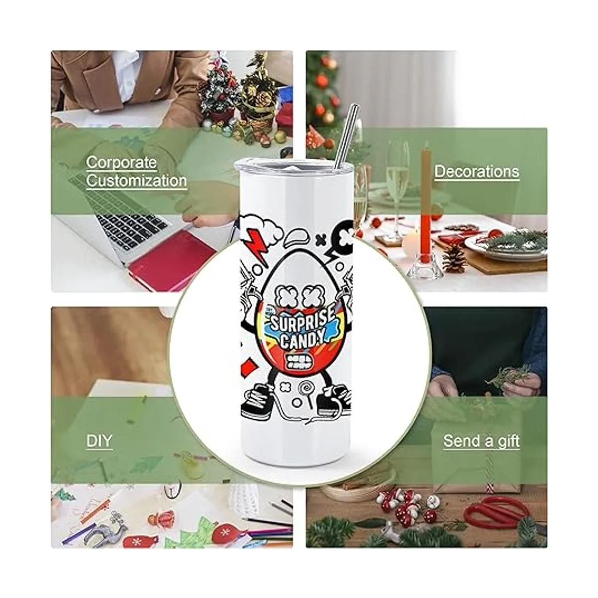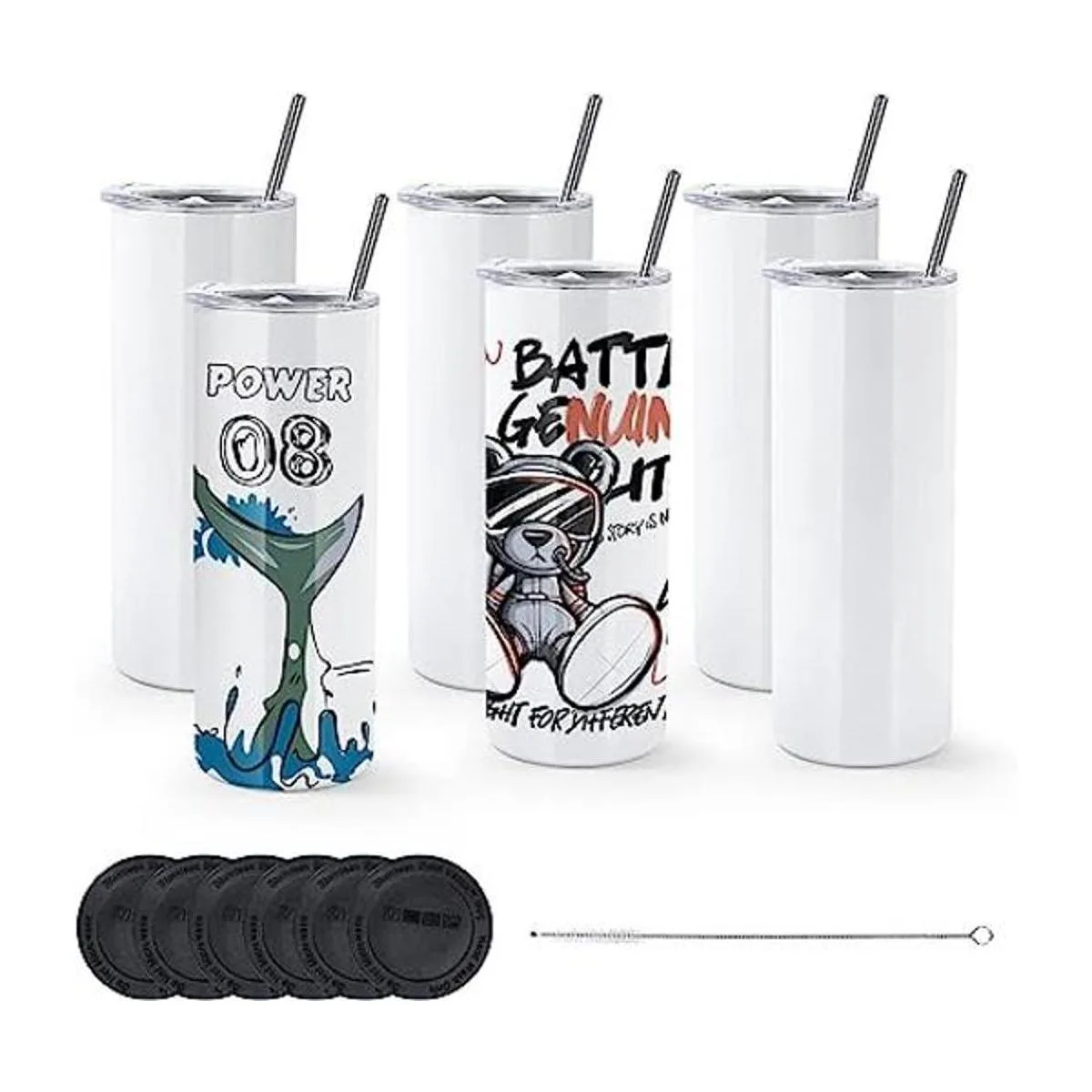 Calidad prémium: hecho de acero inoxidable 304 18/8, este juego de vasos de viaje delgados de sublimación con tapa y popote es altamente duradero y resistente a la rotura y al óxido.