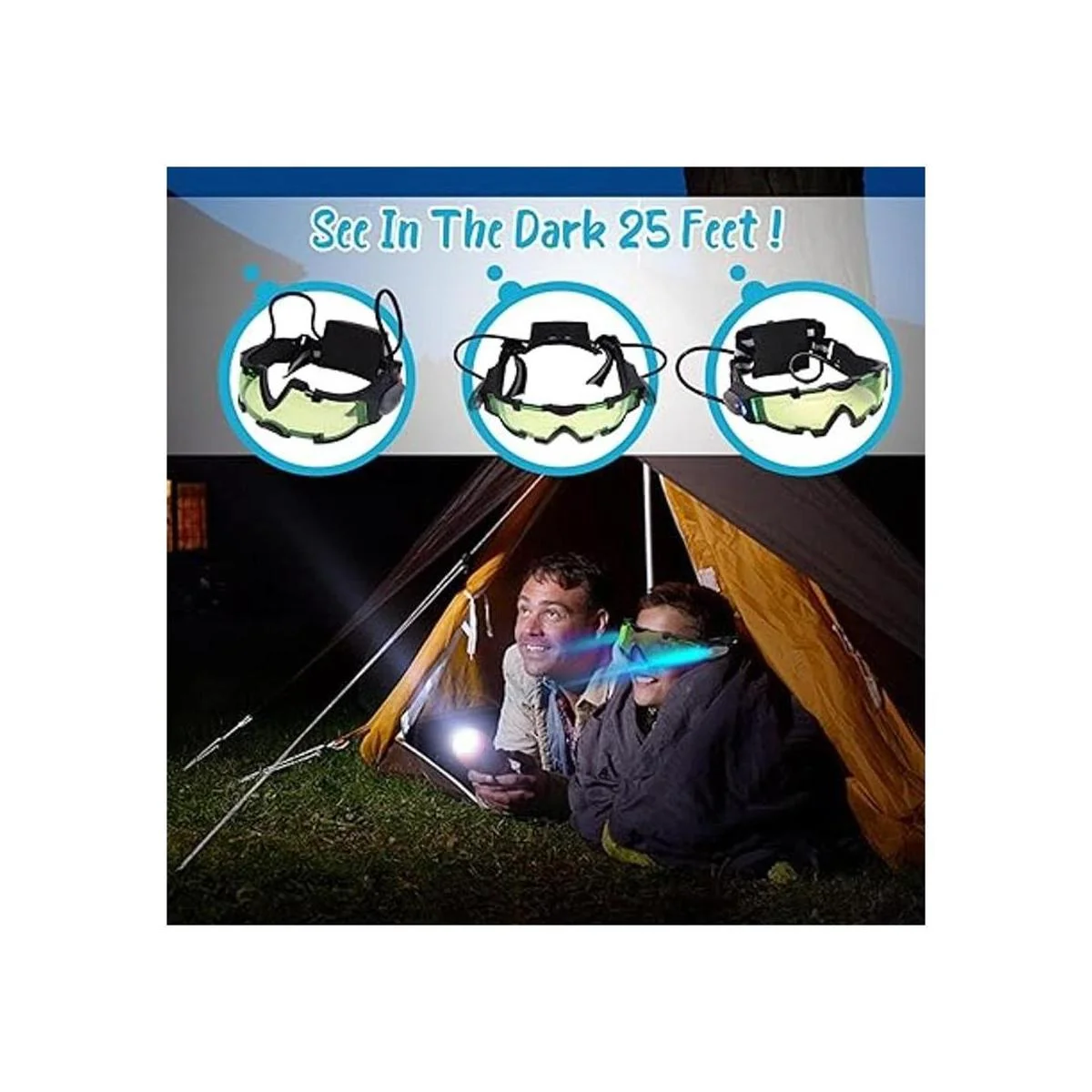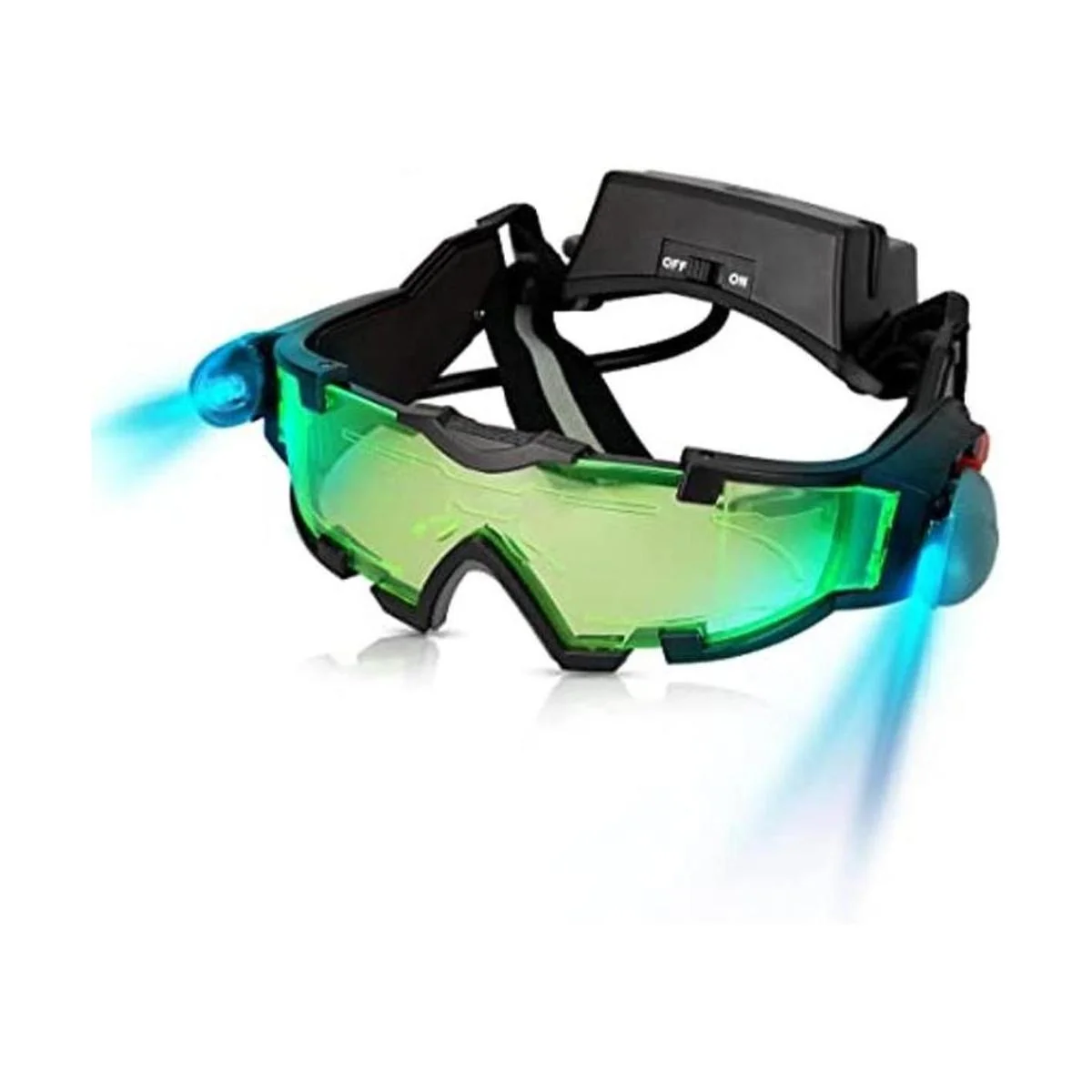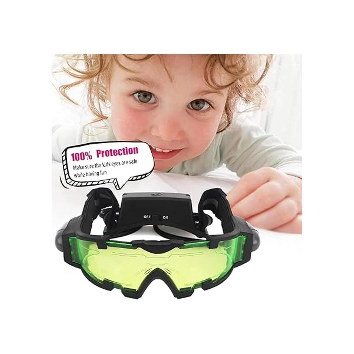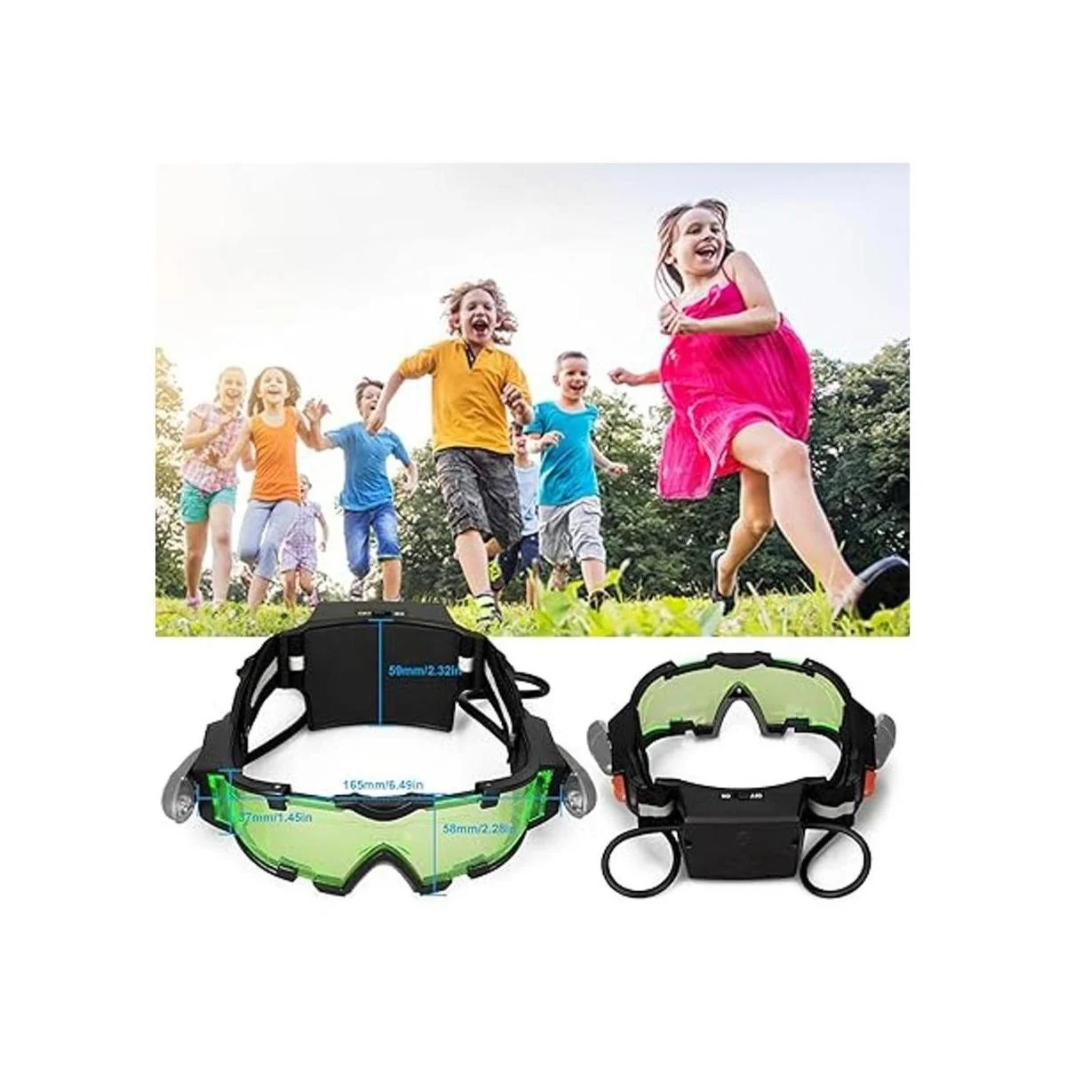AGM Antiparras de visión nocturna de 25 pies ajustables con luces desplegables, lentes verdes, gran juguete para niños
