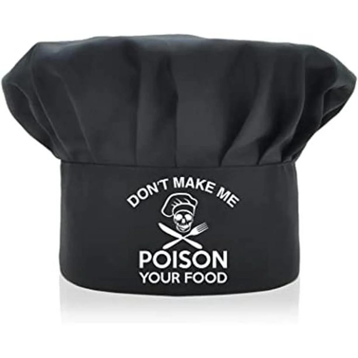 AGMdesign Gorro de chef divertido, no me hagas envenenar tu comida, gorro de cocina ajustable para hombres y mujeres, color negro, para el día de la madre, día del padre, regalo de cumpleaños para él, ella, mamá, papá, amiga
