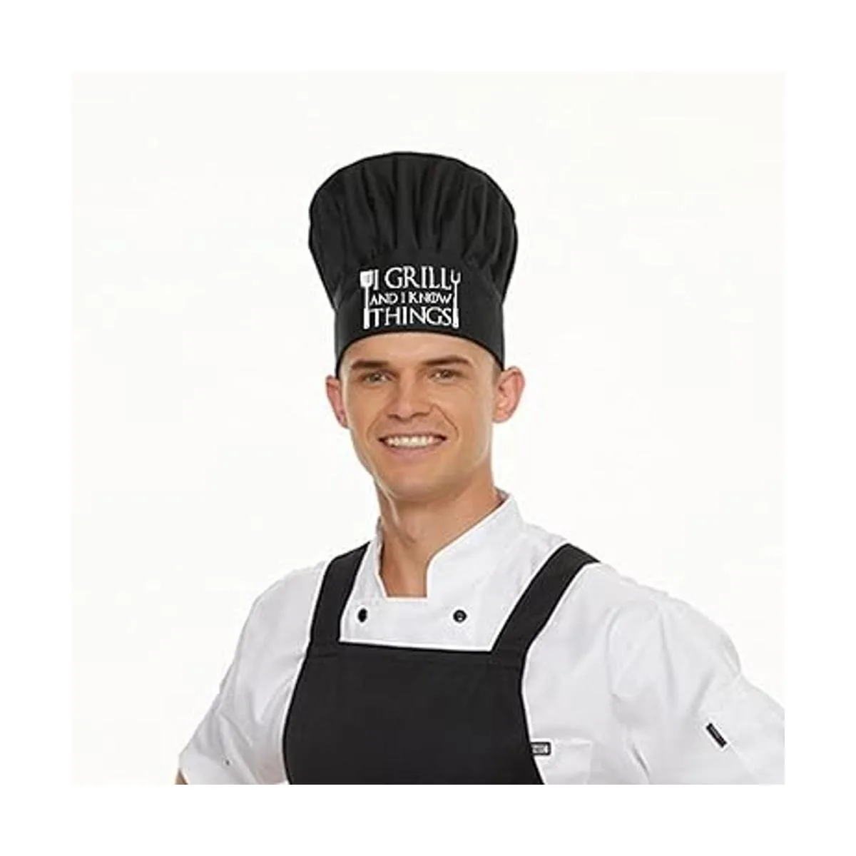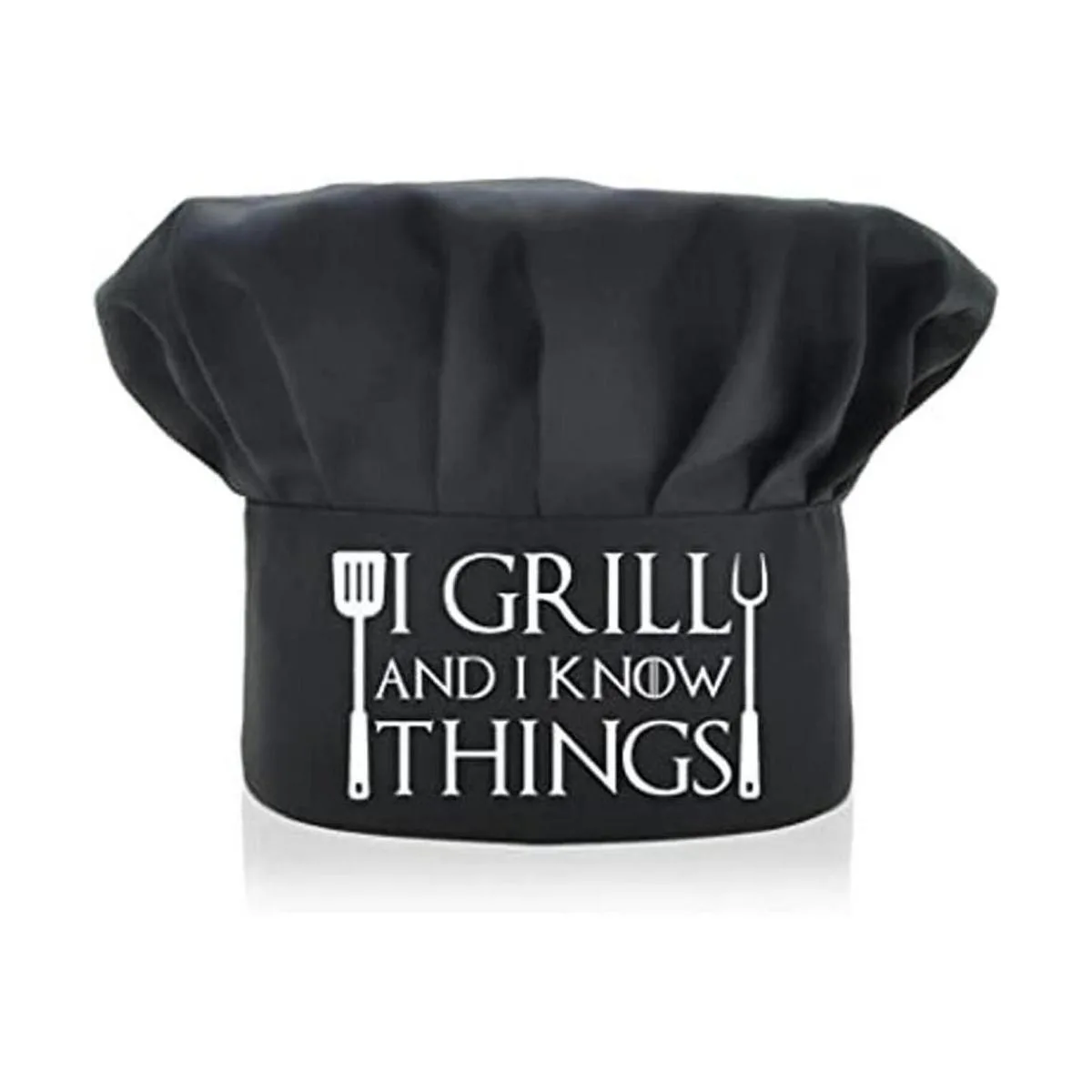 AGMdesign Sombrero de chef divertido, I Grill and I Know Things, sombrero de cocina ajustable para hombres y mujeres, color negro, día de la madre, día del padre, regalo de cumpleaños para él, ella, mamá, papá, amigo.