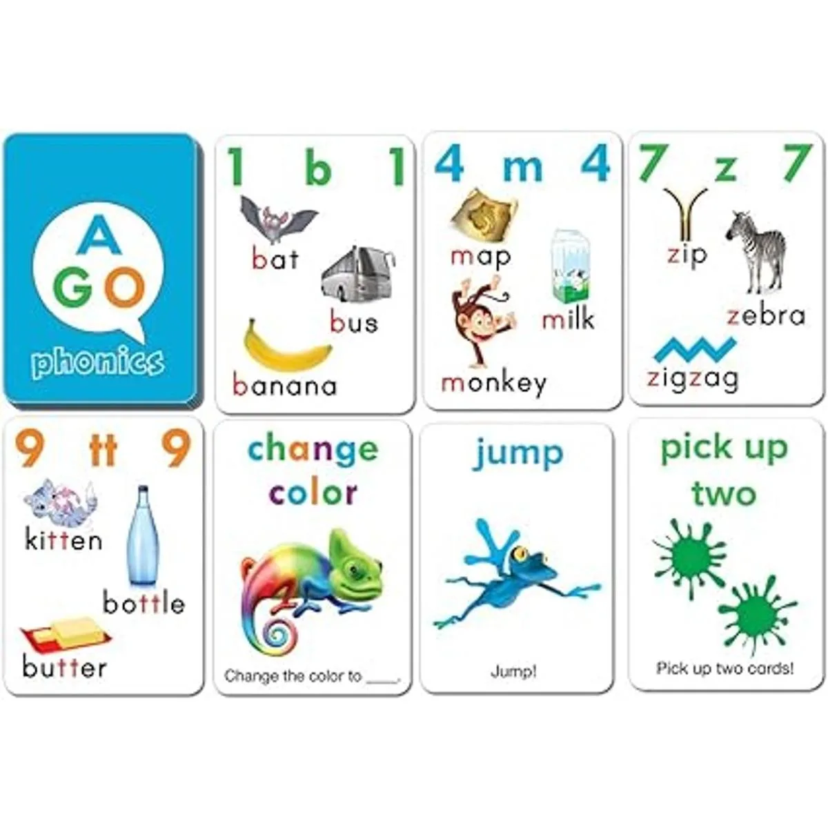 Juego atractivo: hay muchas maneras de jugar juegos de cartas AGO phonics. Las tarjetas de acción como saltar, recoger, cambiar de color, etc. añaden diversión. Los estudiantes aprenden los sonidos y patrones de fonética de una manera natural y divertida con estas fascinantes tarjetas de juego educativo.