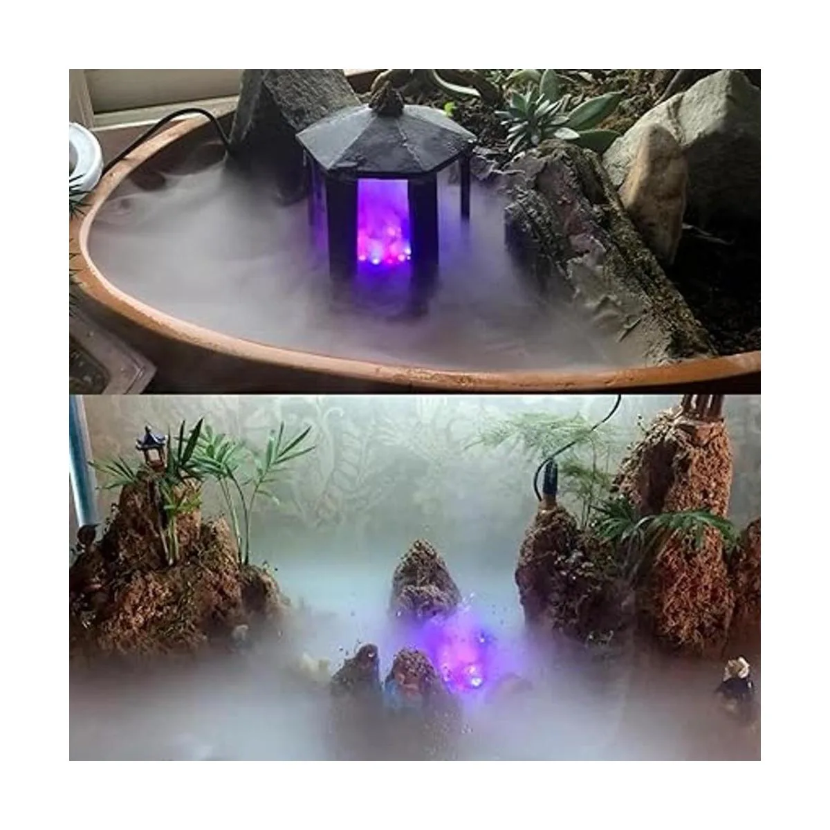 Puede añadir un impresionante efecto de niebla a tu estanque o tanque de agua para filtrar el mal olor con tecnología eléctrica y ultrasónica
