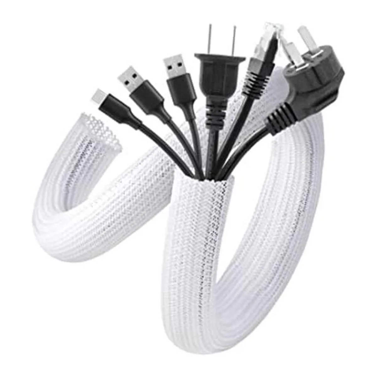Cubierta de alambre para muchos cables fácil de cortar: el tubo del cable se puede cortar fácilmente con tijeras. Mide 4.9 ft x 2 de largo. Tiene un diámetro de 0.7481.142 in y puede contener muchos cables, por ejemplo, Diámetro mínimo: 2 cables de alimentación de 0.256 in 4 cables de datos de 3 a 0.138 in. Diámetro máximo: 4 cables de alimentación de 0.256 in cable de datos de 0.276 x 0.138 in, etc. Especialmente adecuado para esquinas se recomienda cortar la posición de corte con un fuego después de cortar para evitar la propagación