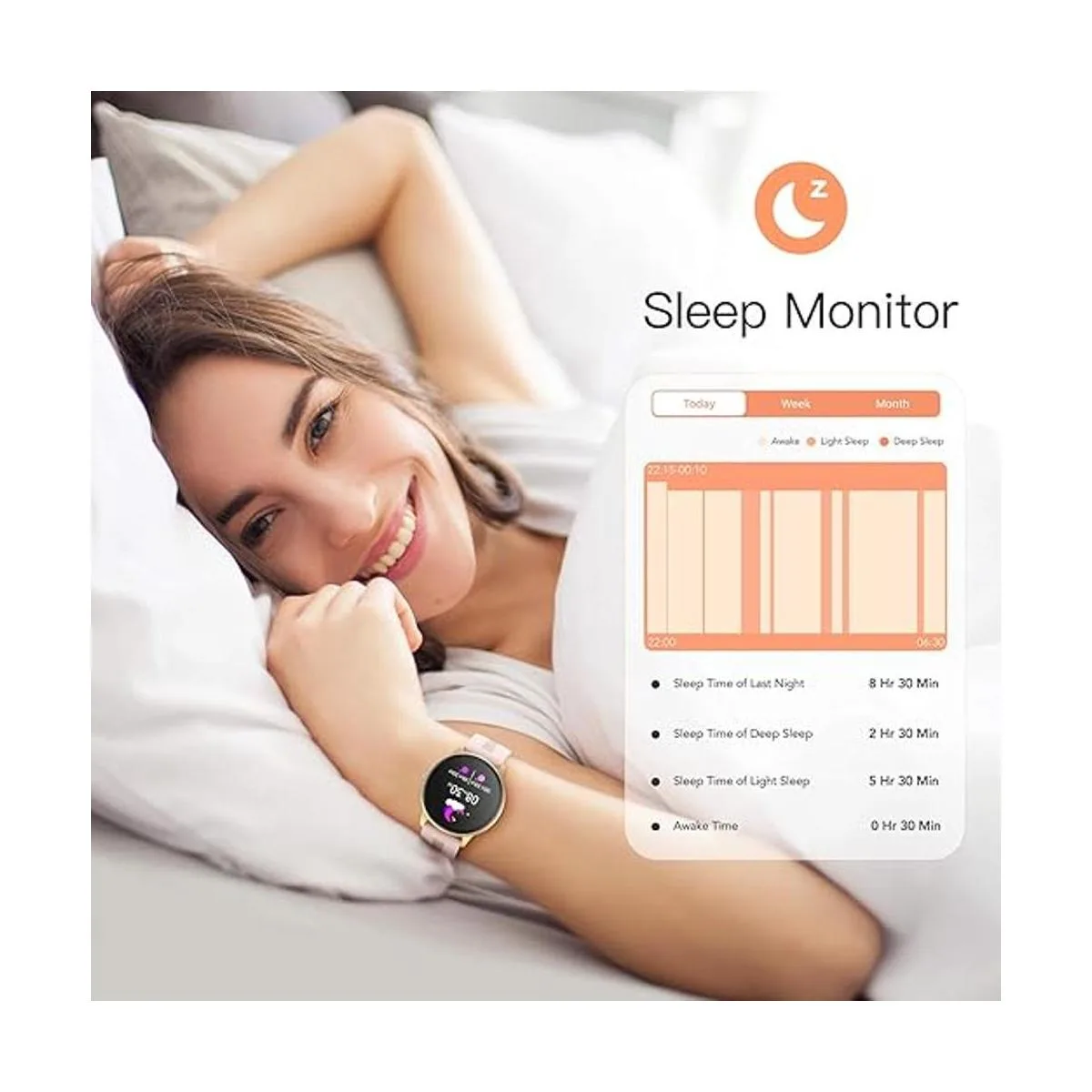 AGPTEK Reloj inteligente para mujer, reloj inteligente para teléfonos Android e iOS, IP68, impermeable, con pantalla táctil a todo color, monitor de frecuencia cardíaca, podómetro, monitor de sueño, rosa, LW11