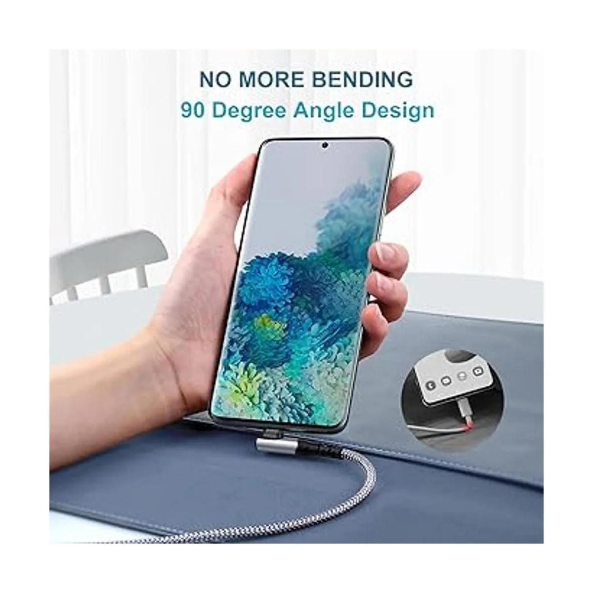 Cable USB C en ángulo recto: el diseño del conector USBC de 90 grados es conveniente para jugar juegos o ver videos mientras se carga, reduce la flexión del cable, prolonga la vida útil del cable USB C. Nota: el grosor permitido de la funda del teléfono es de 0.079 in
