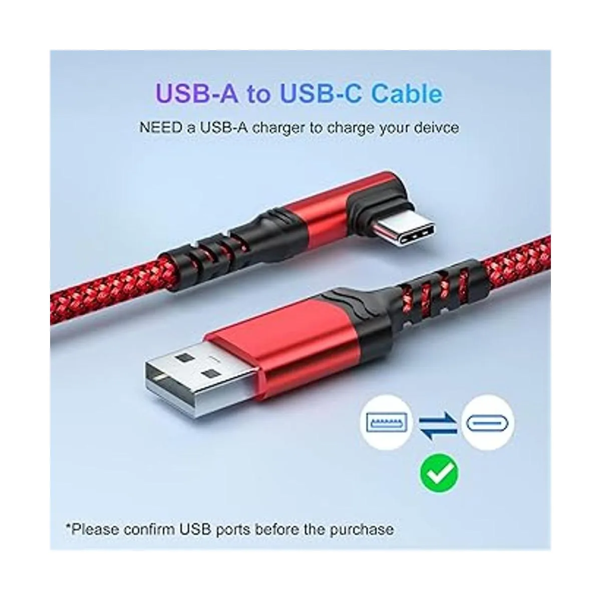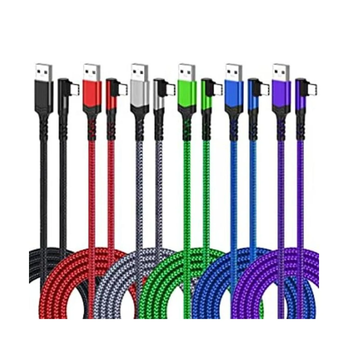 Agtray Paquete de 6 cables USB C de 10 pies de largo de 90 grados de nailon trenzado USB A a USB C, cable de carga rápida tipo C, cable de carga rápida en ángulo recto compatible con Samsung Galaxy S22 S21 S20 S10 Note 20 10 9 A51, G8 G7