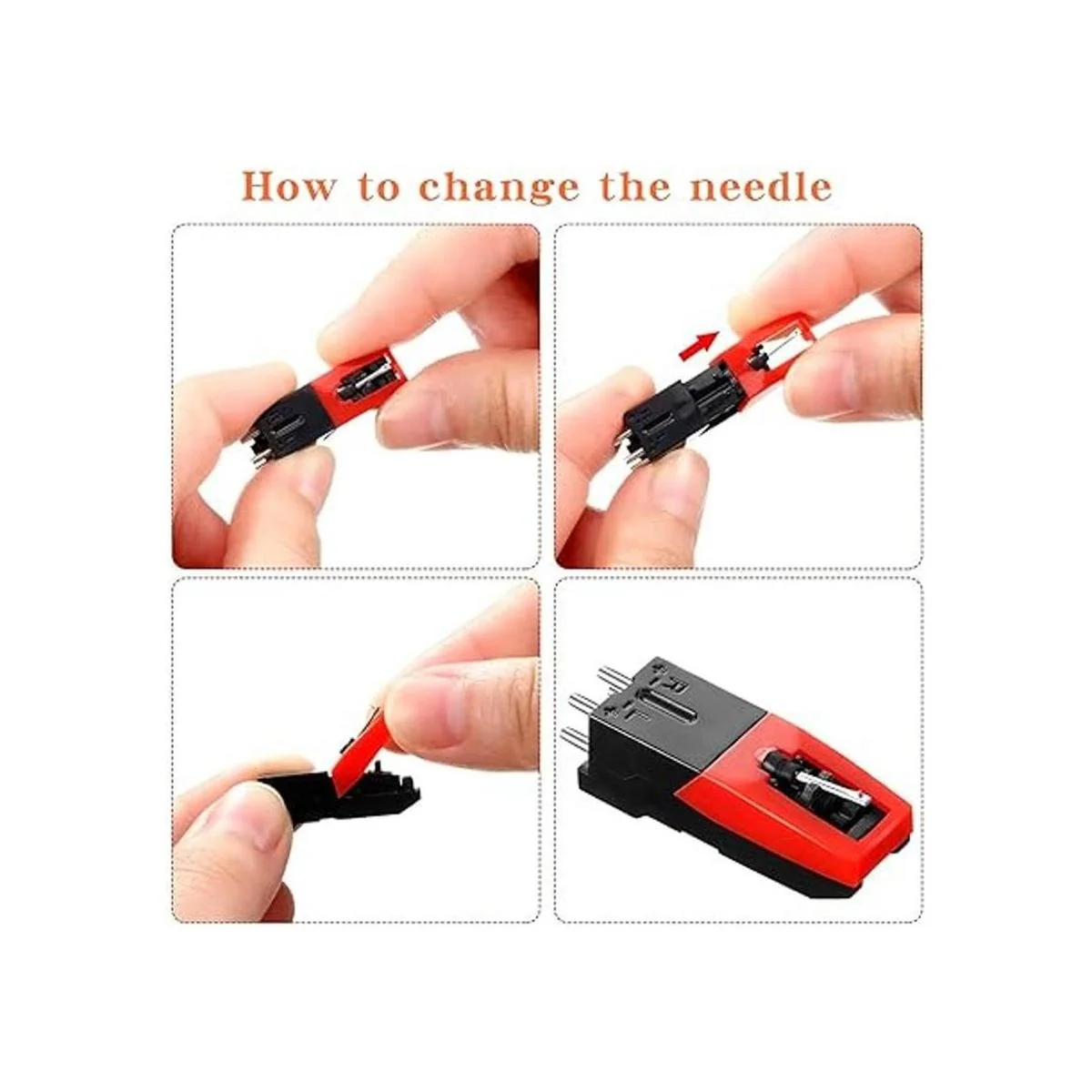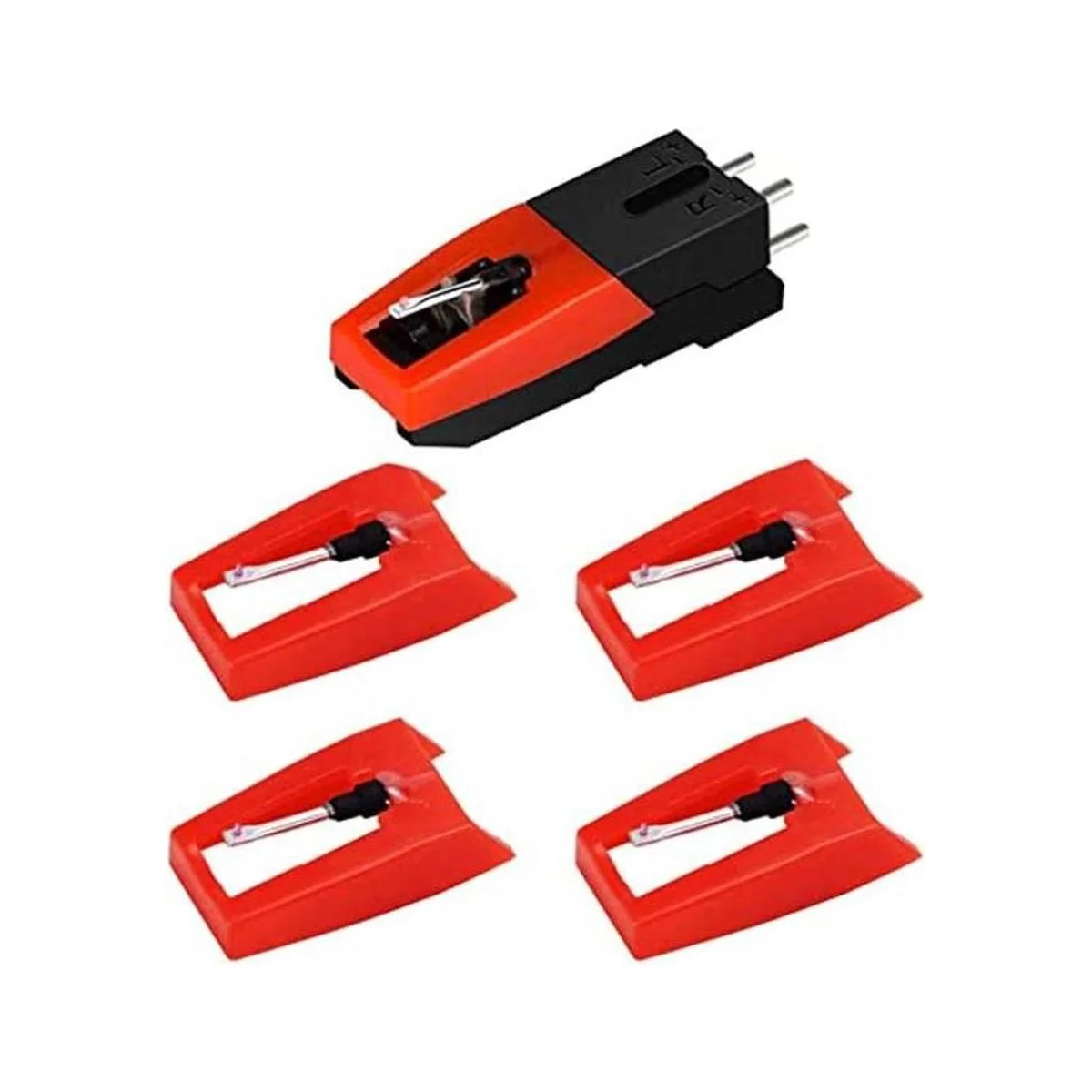 Aguja de reproductor de grabadores, 1 cartucho de reproductor de discos con 4 piezas de repuesto de lápiz óptico de diamante para Crosley, ION, LP, fonógrafo
