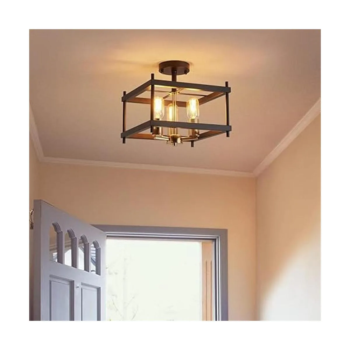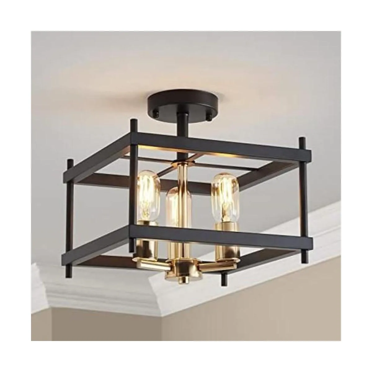 AGV LIGHTING CL011BB Lámpara de techo semiempotrada de granja, luz de techo de acero, base E26, 3 luces, 12 pulgadas de largo x 12 pulgadas de ancho x 9 pulgadas, acabado negro mate