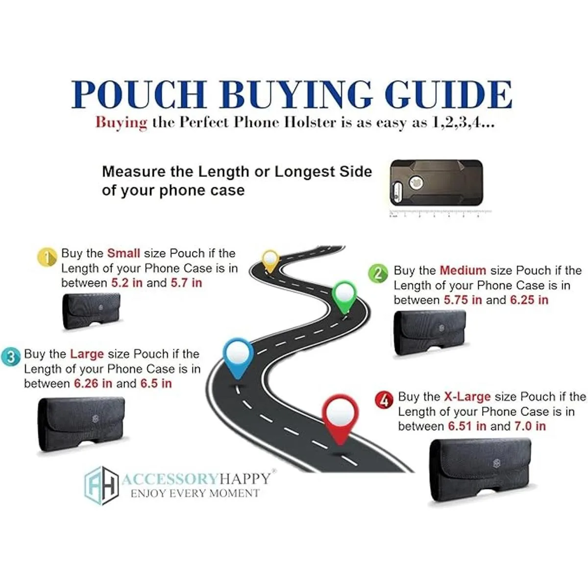 Se adapta a funda regular o funda de armadura media. Dimensiones interiores máximas: Longitud: 6.6 pulgadas x ancho: 3.4 pulgadas x grosor: 0.7 pulgadas Nota: Esta es una bolsa universal para teléfono, el ajuste puede variar. Mide tu teléfono o funda de teléfono antes de realizar el pedido para asegurarte de que cabe en la bolsa de clip para cinturón. Necesitas una funda más grande Por favor, echa un vistazo a nuestro otro listado ASIN: B07LB6HWKZ