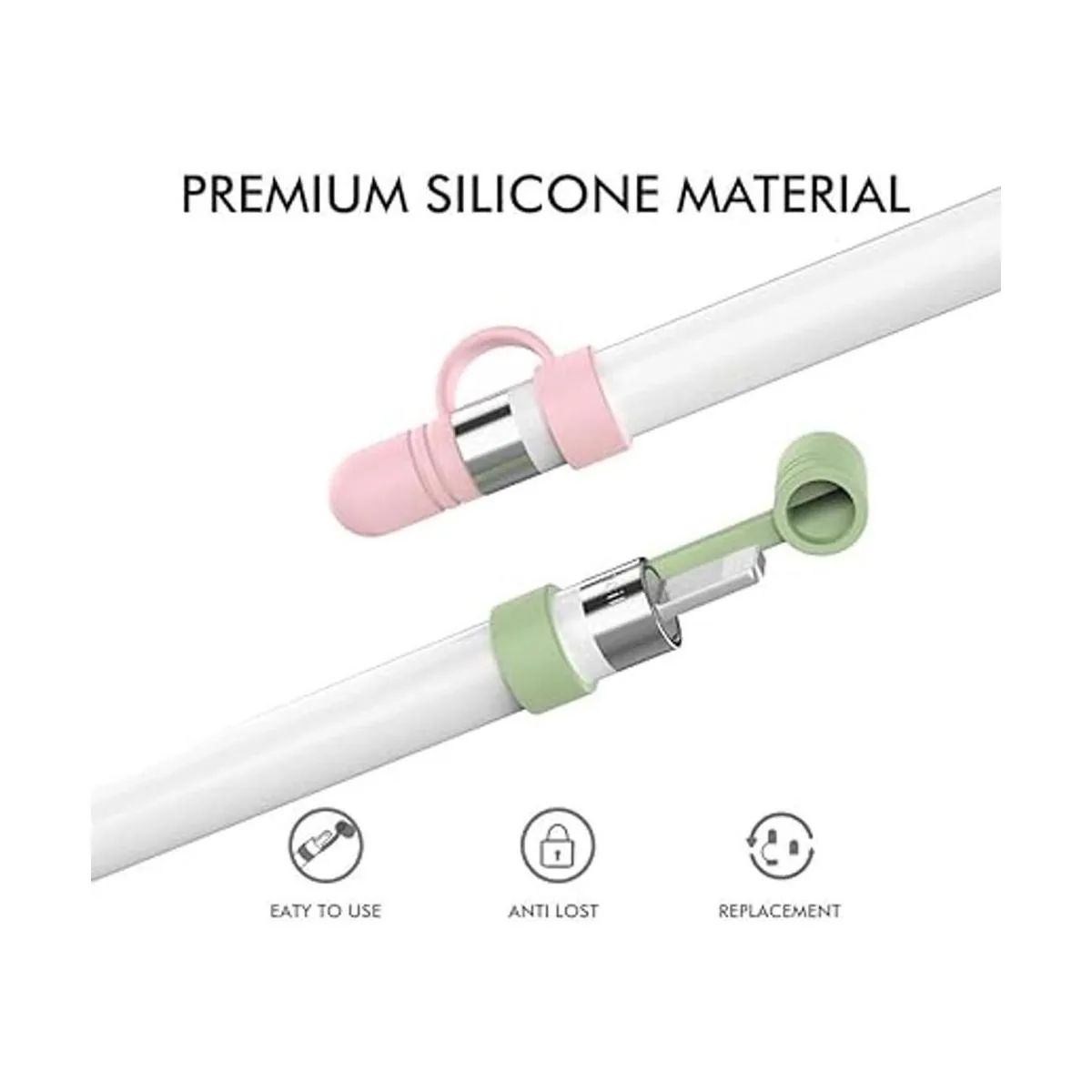 AHASTYLE 3 Pack Tapa de Reemplazo con Correa AntiPerdida Silicona Tapa Protectora para Apple Pencil 1 Generación Blanco, Rosa, Verde Aguacate